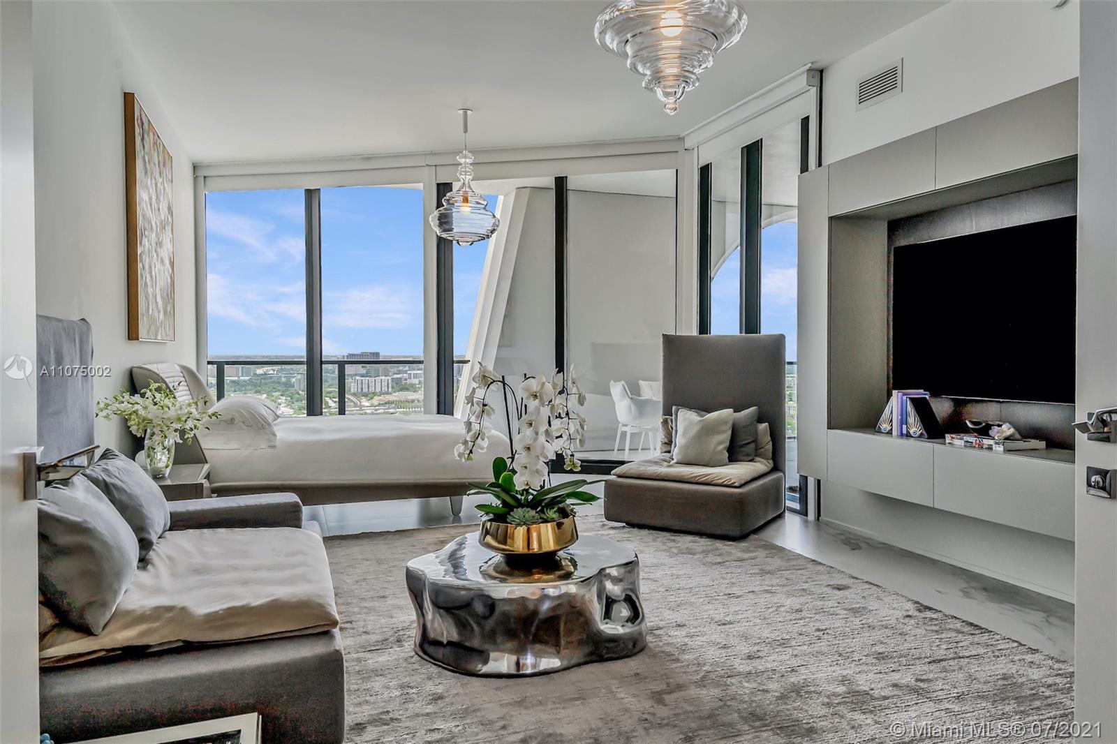 Welcome to one of the finest residences at One Thousand Museum by Zaha Hadid featuring the most sought after 50’ east facing open living room. This one is better then the others by far! Ultra-high-end finishes & fixtures throughout, 4 beds/ 5.5 baths with over 4,600SF & 3 terraces. Fabulously light & bright floor plan with massive open living room making it one of the best layouts in the building for entertaining. Enjoy mesmerizing views of Museum Park, Biscayne Bay and Miami Beach skyline / sunrises in the distance from the eastern terrace and the rest of Miami + awe inspiring sunsets from either of the two western terraces. Finished to perfection! Come see for yourself the unprecedented level of service, lifestyles and amenities One Thousand Museum has to offer. Can be sold furnished.