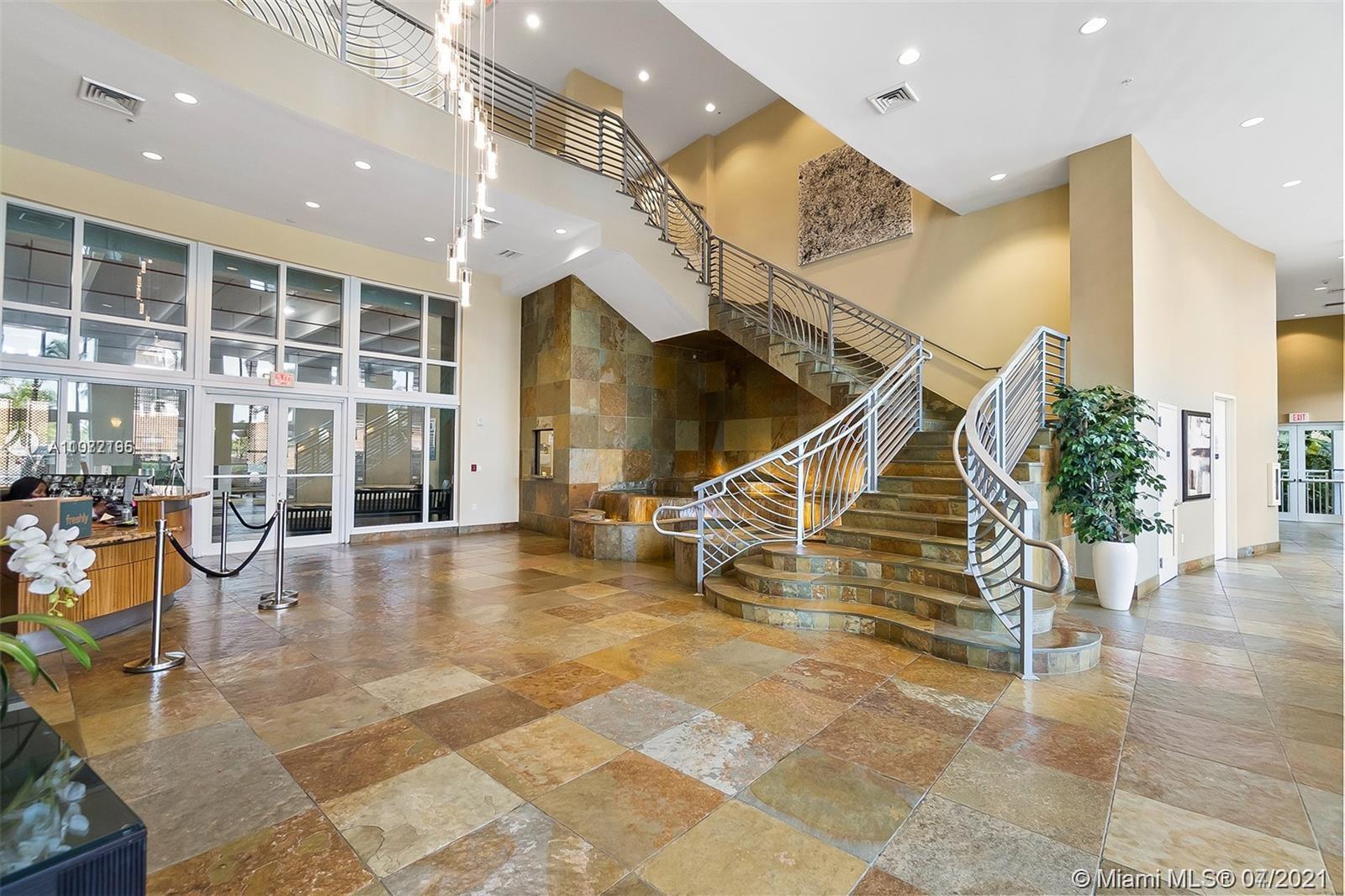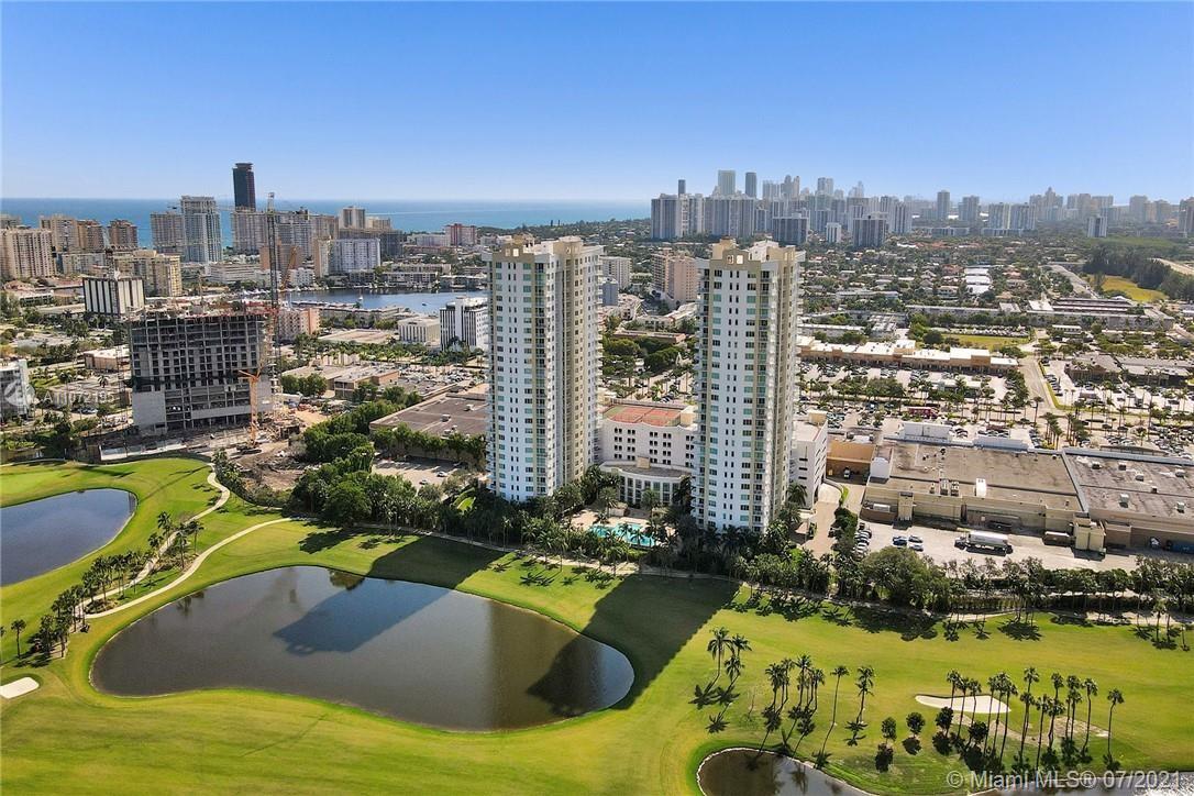 Presenting the best opportunity in the Duo! This corner unit features an incredible wrap-around balcony with view to the golf and city. Its' 1,354 sq ft efficiently spread between 2 large bedrooms make this home one of the most popular units in the complex. 10F CEILINGS Located within minutes of restaurants, Gulfstream Park, Aventura Mall, the beach and other stores, it is considered by many as the hidden gem of the market. The building features heated pool, spa, steam room, full gym, billiard room, tennis courts, jogging track, garage and much more. This unit includes 1 garage parking space + 1 assigned valet spot at no charge. The building includes an appliance contract with Total and basic cable/internet is included. It is truly one of the best buildings in town