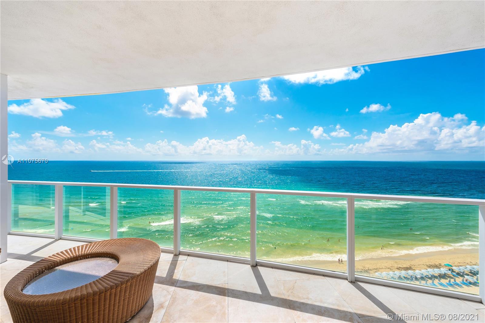 Located at the 11th floor of luxurious ocean front condominium, Apogee Beach. Corner unit facing South - East for the best sunrises!. Enjoy direct ocean views from the living room & from the spectacular wraparound balcony. Open Kitchen with bar. Master bedroom facing the ocean with balcony access. Master Bathroom has a separate tub & shower, and dual sinks. 2 bedrooms each one with its private bathroom. DEN with window that could be easily converted in a 4th bedroom. One half bath. 1 assigned covered parking spaces. Amenities include 2 story lobby, 24 hours lobby attendant, stunning oceanfront pool deck & beachfront cabanas, spa & fitness center, resident club room & lounge, state of the art theater, teen & children lounge.