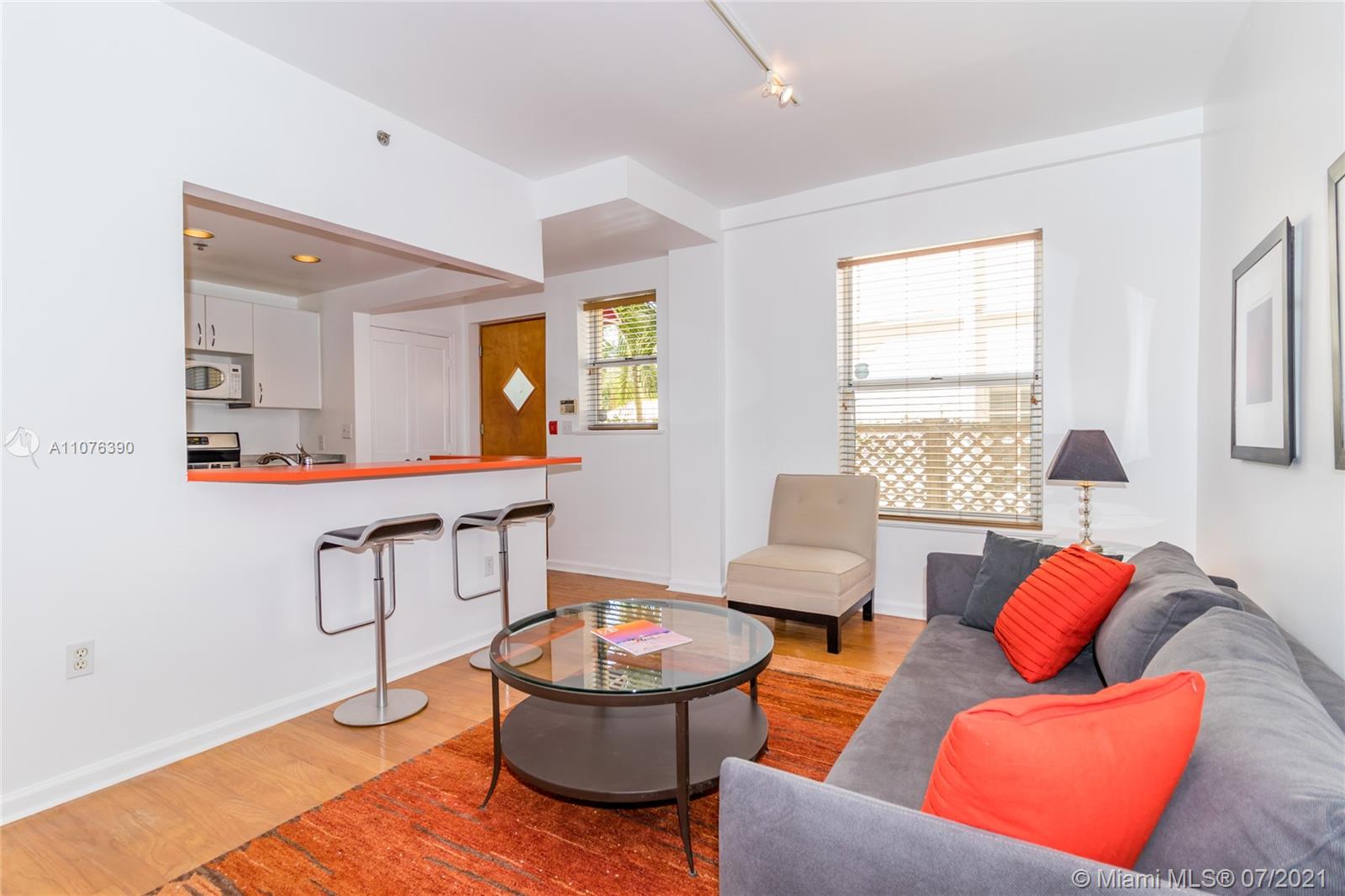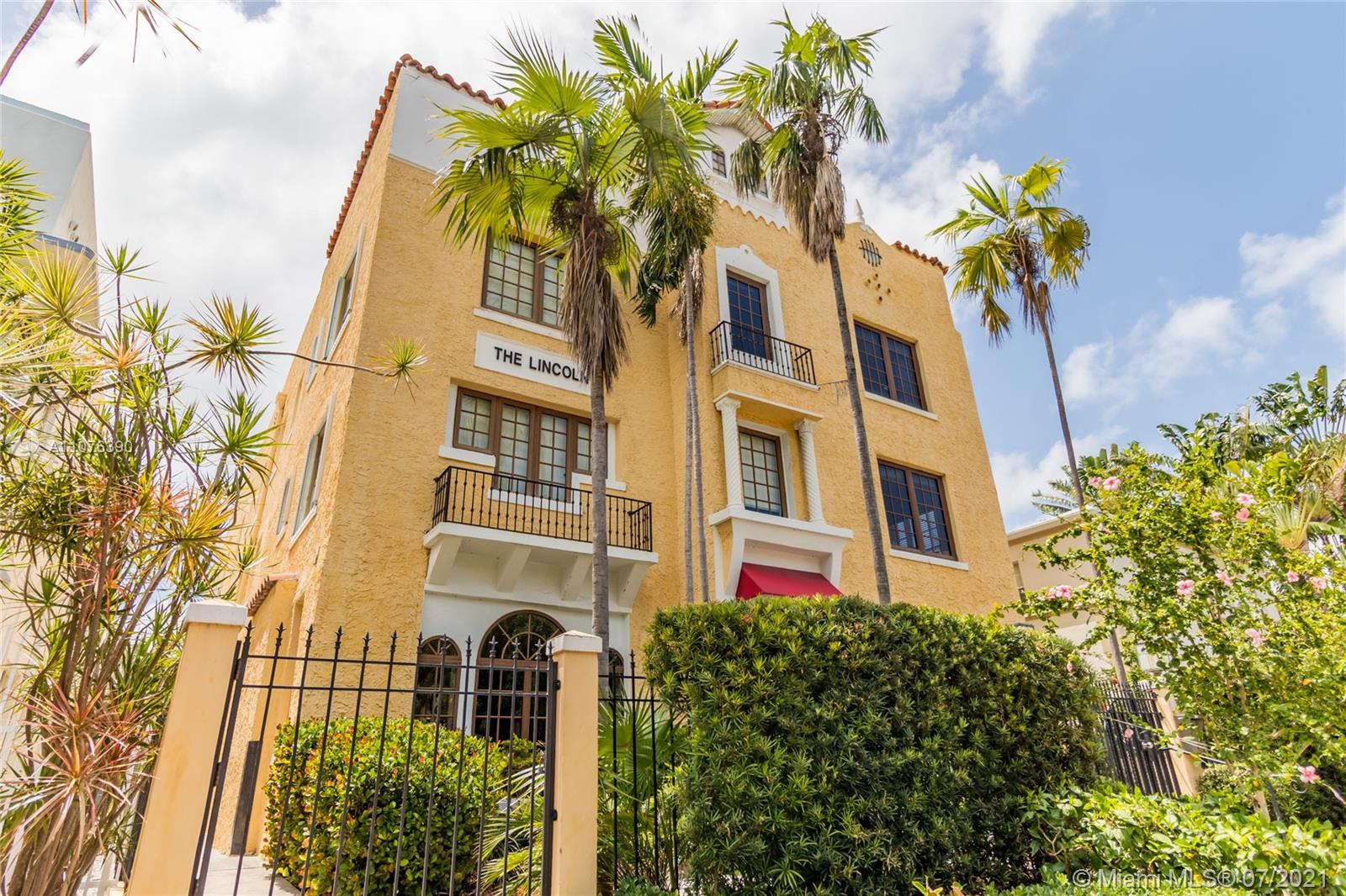 1925 Mediterranean Masterpiece "The Lincoln" located right off Lincoln Road in the heart of South Beach! The perfect pied-a-tierre, full or part time residence with open floorpan including private entrance, hardwood flooring, stainless kitchen counters, new appliances, side-by-side washer and dryer and oversized bathroom with walk-in shower. Easy street parking or a space can be rented at a garage about one block away. Excellent location in the heart of Miami Beach’s Art Deco District just steps to shopping, dining, symphony, theater and the beach.