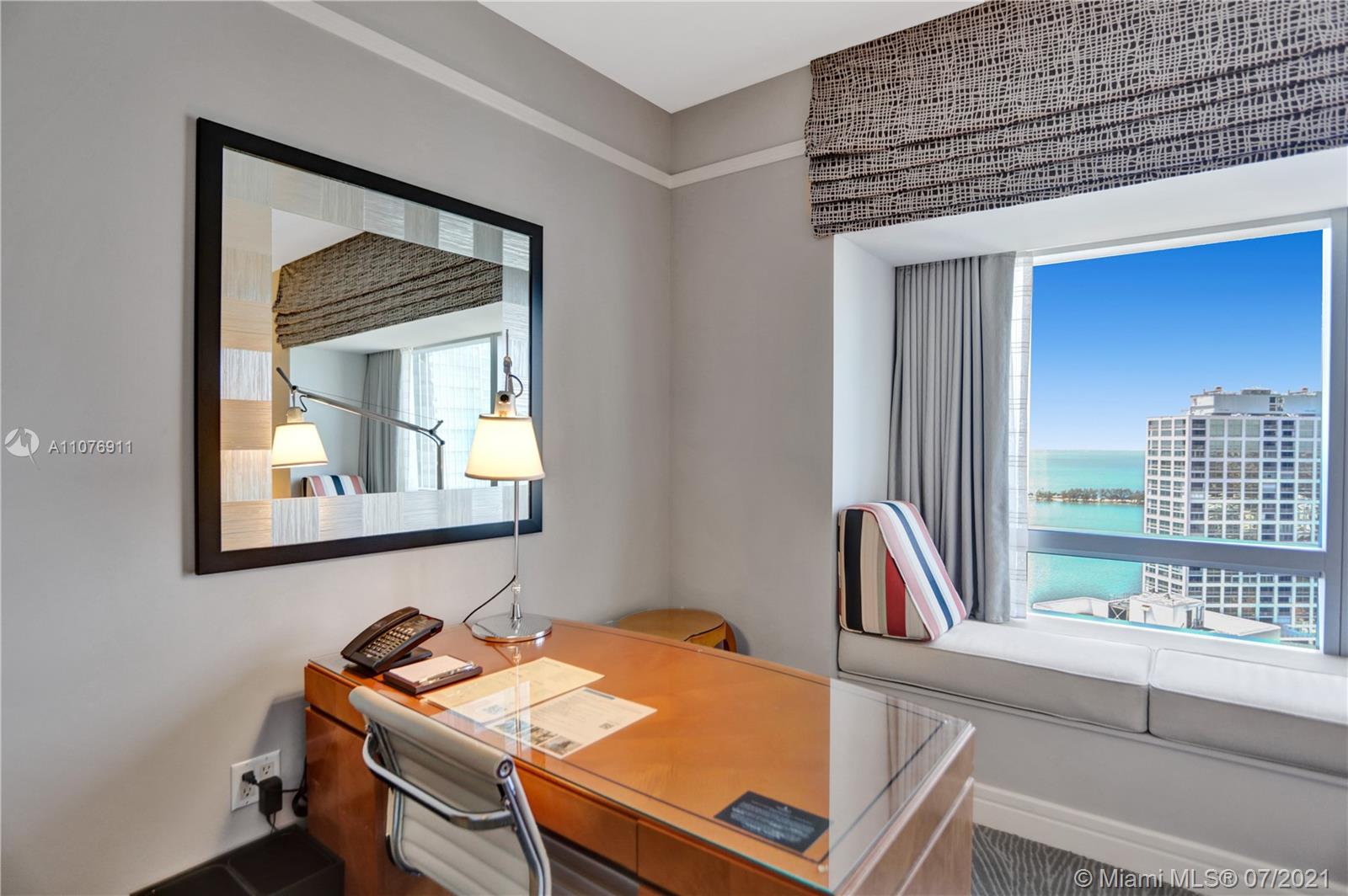 LEGENDARY FOUR SEASONS CONDO- HOTEL STUDIO UNIT WITH BEST SOUTH UNOBSTRUCTED VIEW OF THE BAY AND KEY BISCAYNE. THE UNIT IS COMPLETELY FURNISHED WITH FULL KITCHEN, GLASSWARE, DISHES AND UTENSILS. STRONG INCOME POTENTIAL VIA HOTEL RENTAL PROGRAM. THIS BEATIFUL STUDIO IS IN PERFECT CONDITION.COME AND LIVE AT THE FOUR SEASONS LIFESTYLE WITH RESTAURANTS, LOUNGES,ROOMSERVICE, FULL SERVICE SPA, POOL WITH POOL SIDE CABANAS, AND LARGEST FITNESS CENTER.