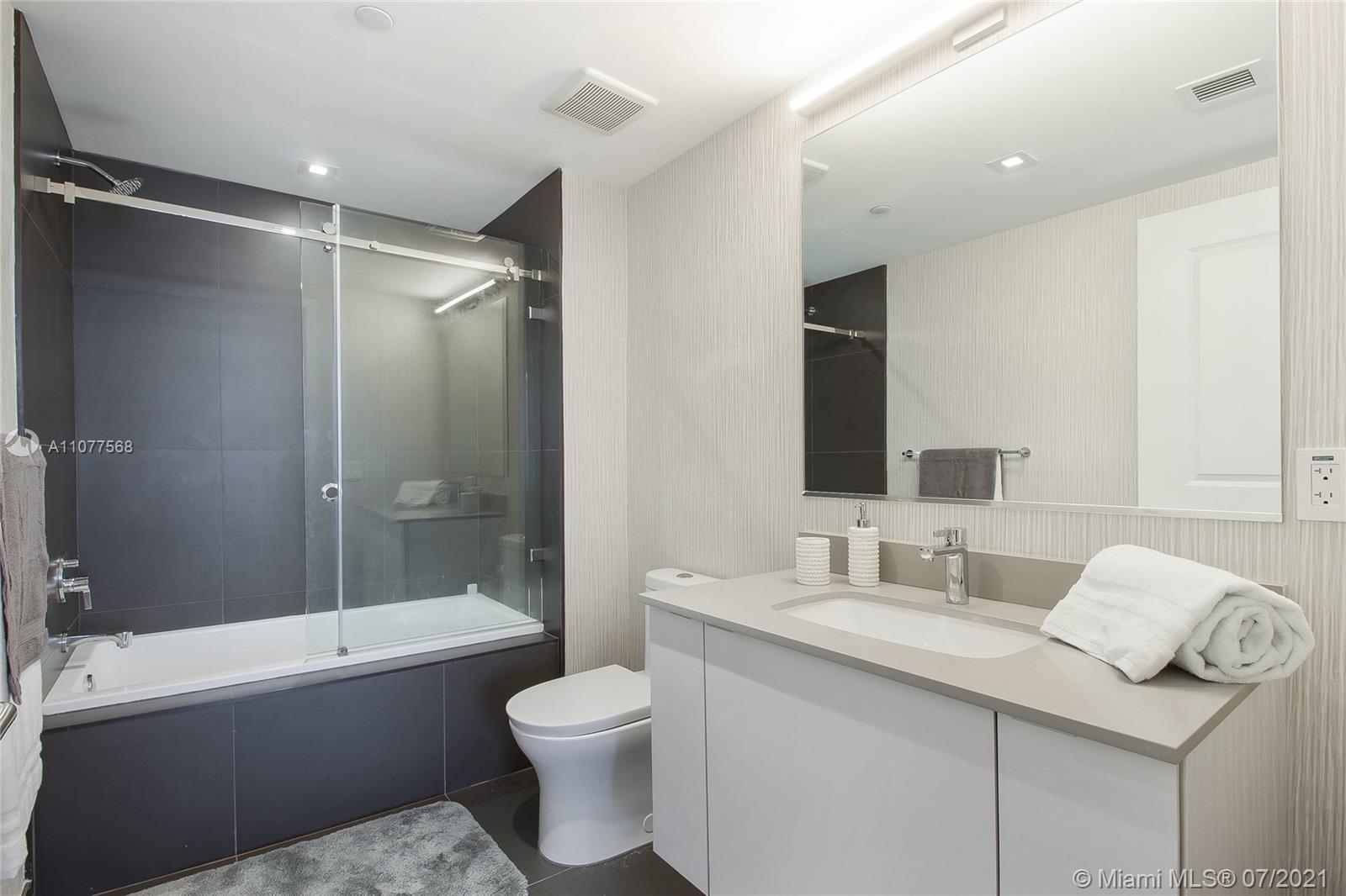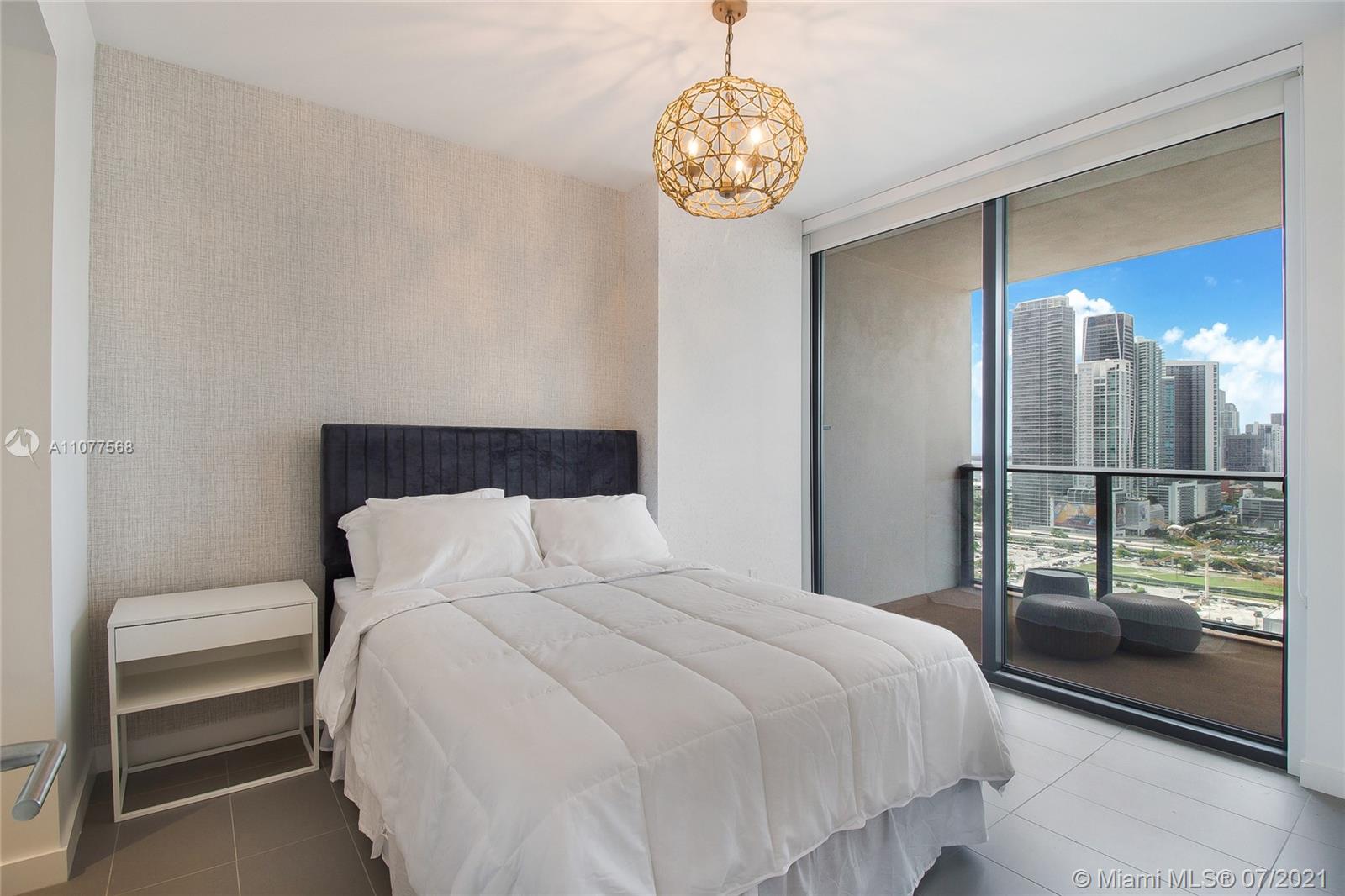 Turnkey unit located in the Arts & Entertainment District, this 2 bed/ 2 bath condo has endless panoramic bay and city views. Tastefully decorated and fully furnished. Includes basic cable and Internet. 2 parking spaces. (One self park, One Valet) Amenities include: 3 pools, jacuzzi, spa, gym yoga and meditation areas, high speed internet throughout the entire building, glass racquetball court, movie screening theater, modern game room, outdoor lounge and BBQ area. 24/7 security & concierge. MetroMover station one block across the street. Minutes aways from major restaurants, bars and shopping. 15 Mins drive to Miami International Airport. Short Term rentals allowed. Condo eligible for 3% downpayment!