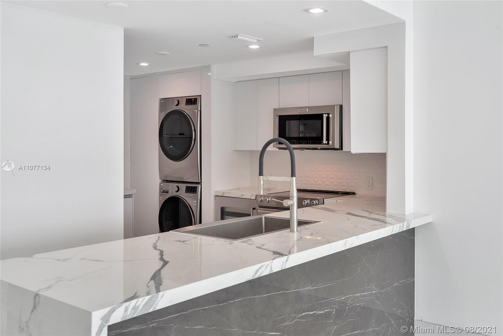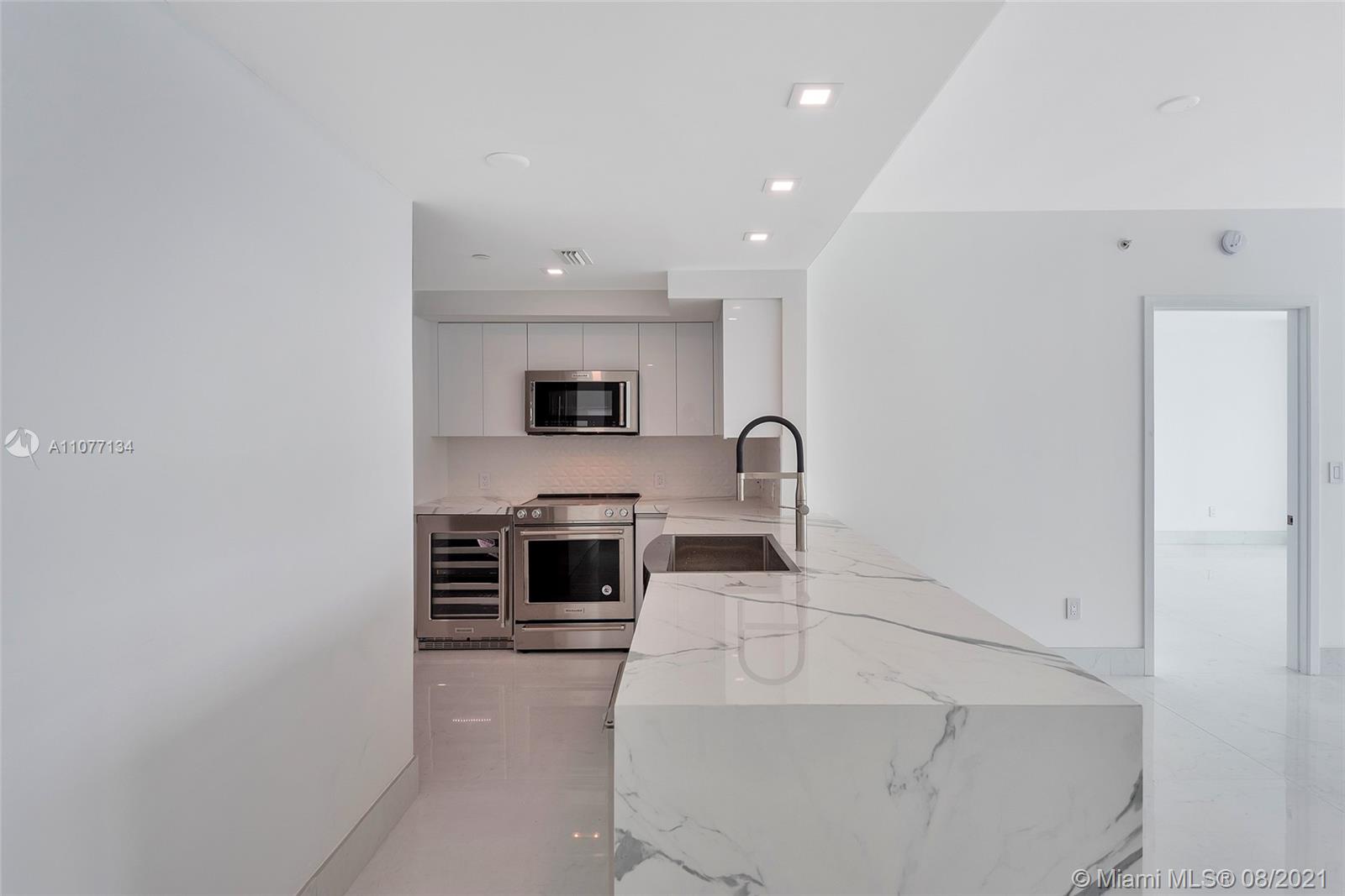 Entirely remodeled to perfection in one of Brickell's most luxurious condominium. Enjoy imposing endless Ocean views from every room in the unit through expansive floor to ceiling impact windows. This 1Bed unit features the finest finishes with recessed lights and European porcelain floors and bathroom walls. Master suite with spectacular water views and an expansive bathroom featuring Dual Sink & Spa-like tub.  5- star amenities and strong reserves bldg. Extra Storage. Walk to the best restaurants and parks and short drive to the beach.