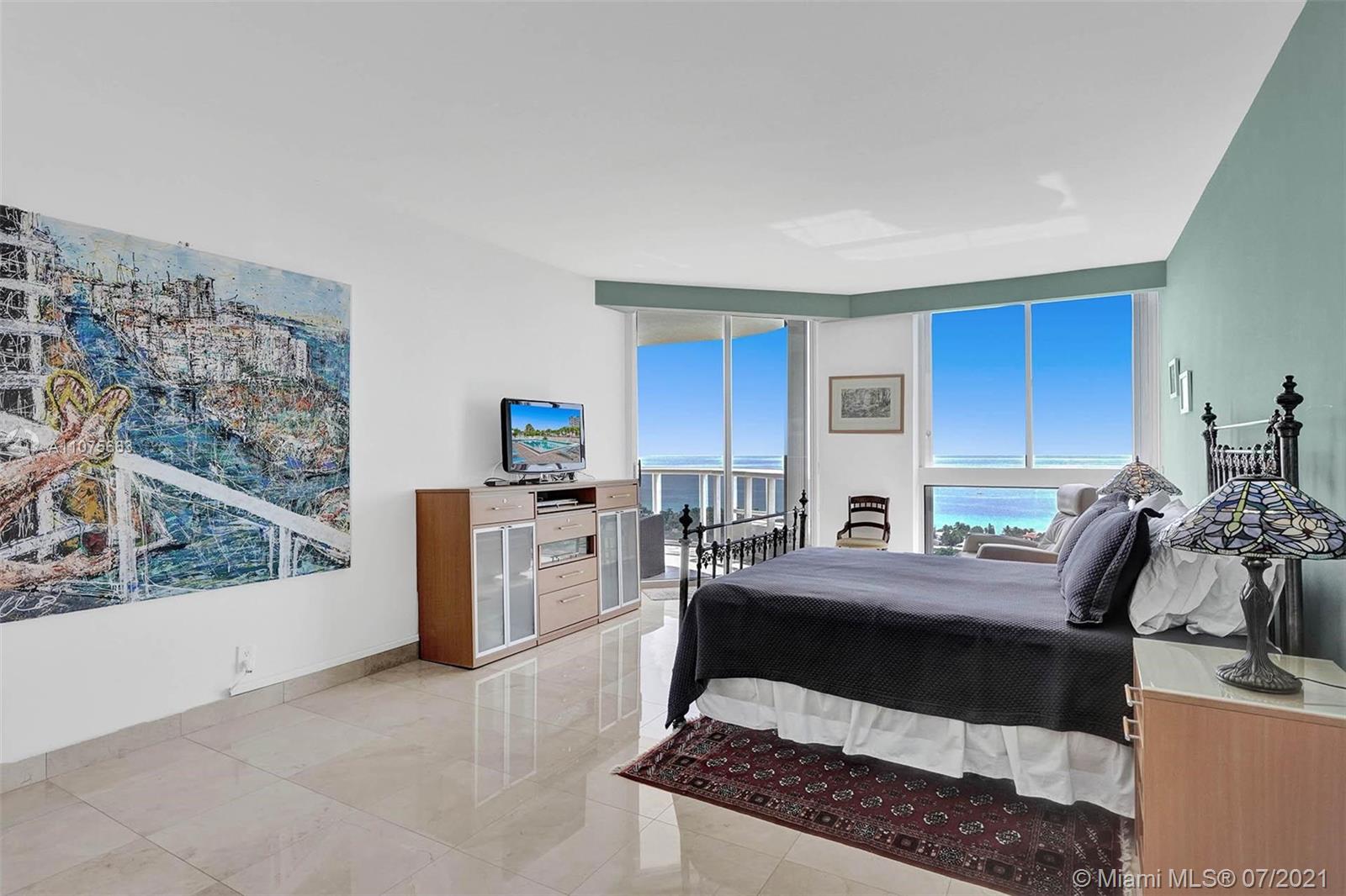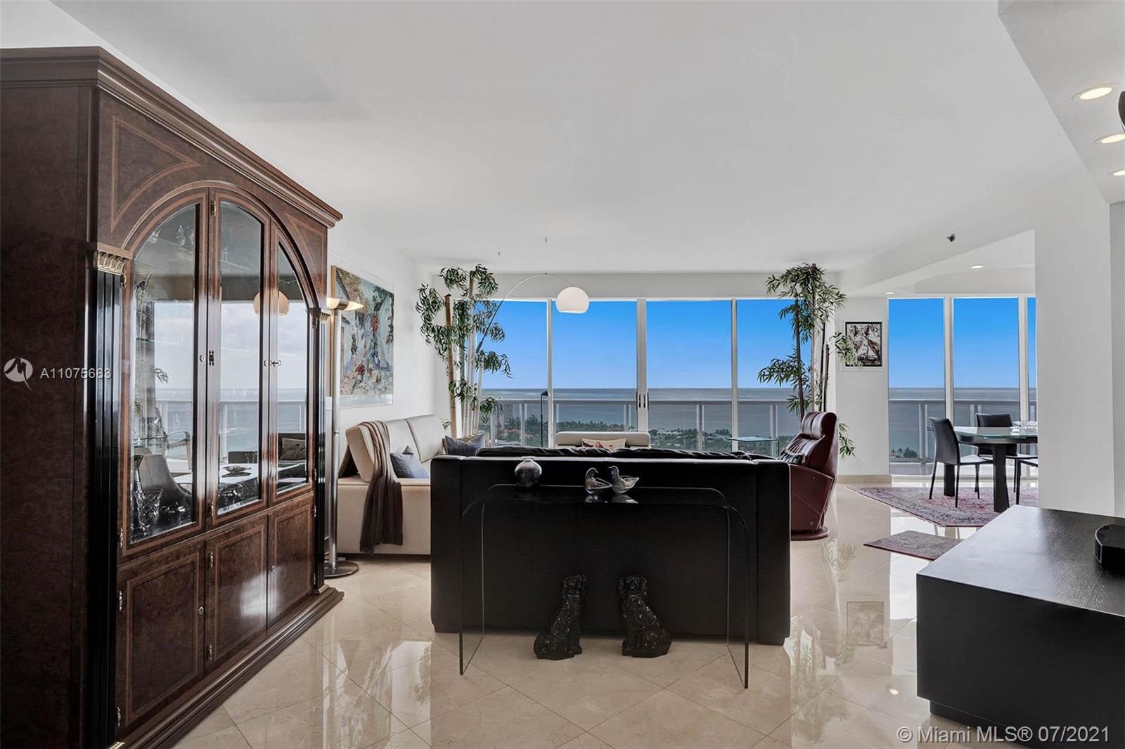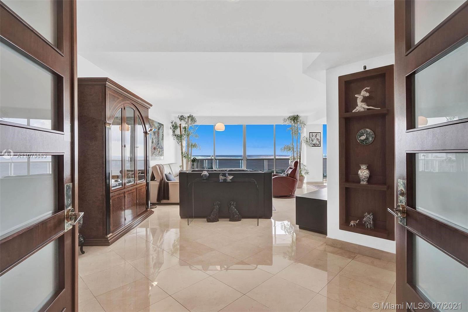 Highly sought after three bedroom three bath Biscayne Model apartment with spectacular Atlantic Ocean views from every room. This apartment has been impeccably maintained. Features include private elevator entry, marble flooring throughout, quartz countertops, built-ins and a master bedroom modified to include a sitting area with TWO walk-in closets. Additional refrigerator located in Laundry room. Two covered parking spaces and storage bin included. One Island Place is a full service luxury building situated on 8 acres in the heart of Aventura. Amenities include TWO pools (morning and afternoon sun), two tennis courts, exercise pavilion and a snack bar open on weekends. Easy to show and sell! Please use show assist to request your appointment.