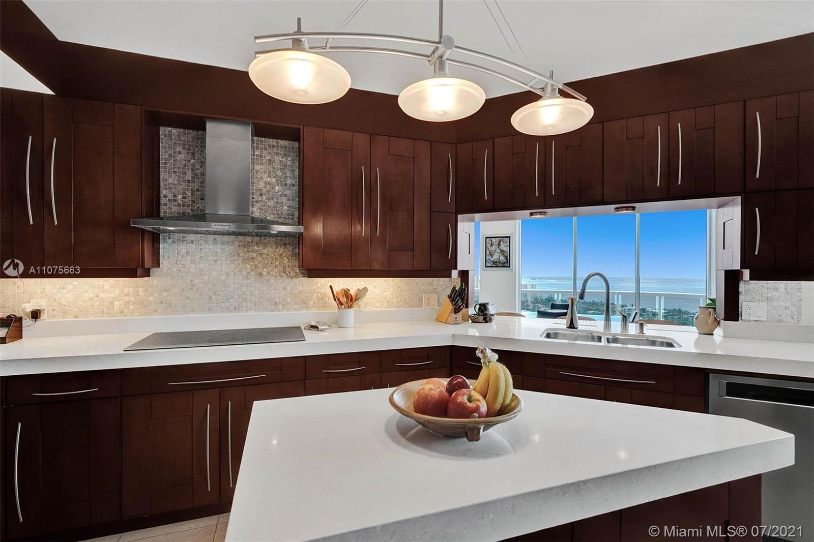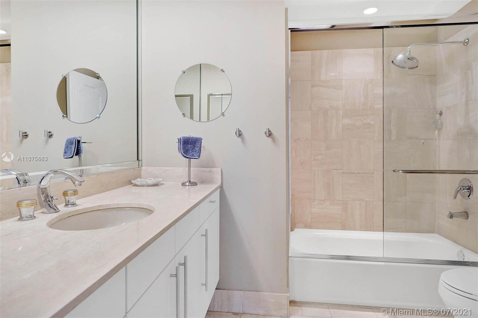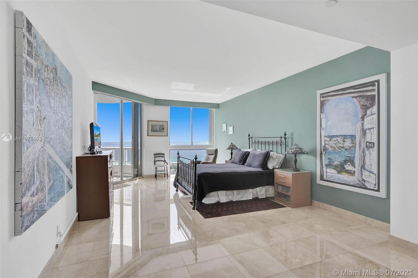 Highly sought after three bedroom three bath Biscayne Model apartment with spectacular Atlantic Ocean views from every room. This apartment has been impeccably maintained. Features include private elevator entry, marble flooring throughout, quartz countertops, built-ins and a master bedroom modified to include a sitting area with TWO walk-in closets. Additional refrigerator located in Laundry room. Two covered parking spaces and storage bin included. One Island Place is a full service luxury building situated on 8 acres in the heart of Aventura. Amenities include TWO pools (morning and afternoon sun), two tennis courts, exercise pavilion and a snack bar open on weekends. Easy to show and sell! Please use show assist to request your appointment.