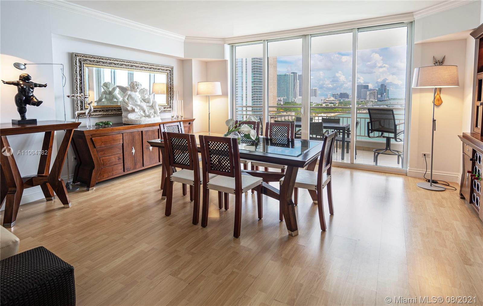 Luxurious 2-bedroom (Plus one converted), 2.5 bathrooms condo located in the exclusive Brickell Key Island in one of the most desirable buildings in South Florida, the 3 Tequesta Point at Brickell Key, offering pool, fitness center, spa and 24 hour concierge to mention a few. The impeccable unit boasts beautiful wooden floor throughout and beautiful details such as custom closets, custom blinds, hurricane proof curtains, and more. Large main bedroom has 2 closets and large bathroom with spa Second bedroom has plenty of closet space and large bathroom that shares with 3rd bedroom (a Conversion made by owner). Livingroom and dining areas have stunning views of the Intracoastal. Walking distance of the best dining, shopping, and lifestyle in Miami. Live in Paradise!