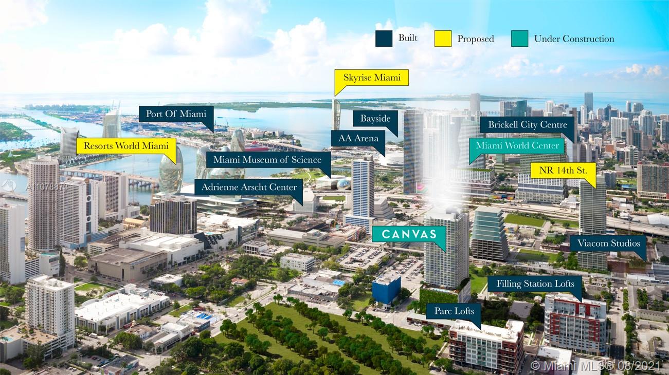 Canvas Condos is a luxury residence tower, soaring 37 stories above Miami’s Arts and Entertainment District. This Beautiful 1/1 apartment comes complete with top of the line finishes including a modern and upgraded kitchen with quartz countertops and stainless steel appliances. Large floor to ceiling windows, spacious closets, washer and dryer inside unit, and Panoramic Views of Bay, Port & City. The building offers 30,000 square feet of amenities that are amazing. They include 3 swimming pools including a sunrise and sunset pool, Jacuzzi, indoor Racquetball Court, a 3000 sq. foot gym, office center with ample work space, game room, Spa, Sauna & Treatment Room, Indoor/Outdoor Yoga Garden, Children’s Playroom & Lab, Indoor/Outdoor Pool Bar & Cafe, sundeck, and a social room. A must see!
