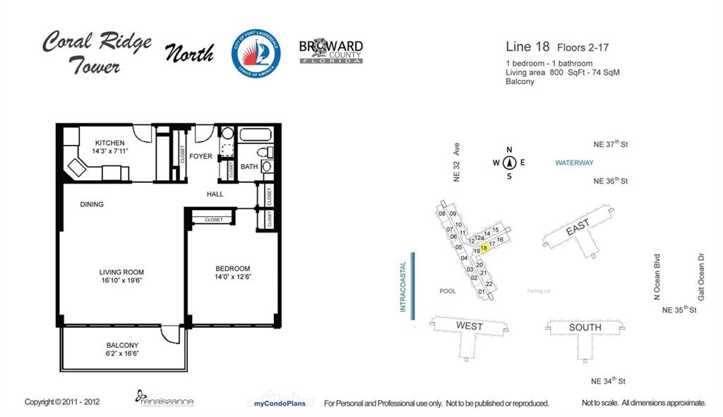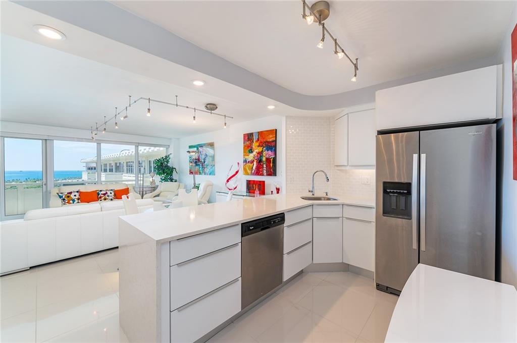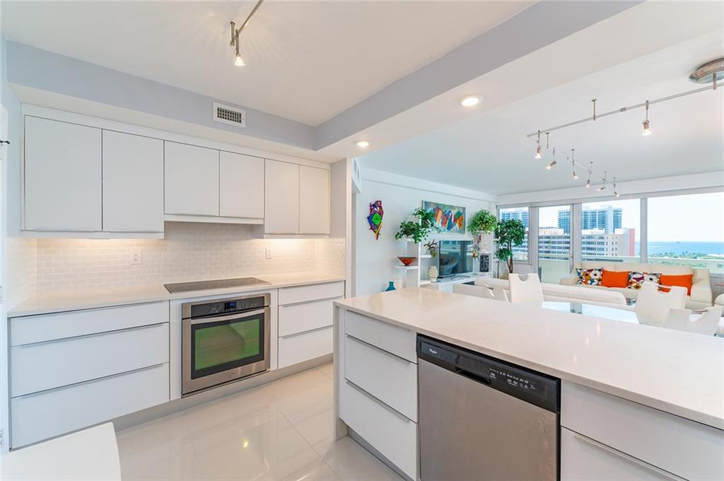Beautiful apartment with coveted ocean views from every room. This move in ready home features an open contemporary kitchen, updated bathroom and large porcelain tile floors throughout. Hurricane impact windows and doors have been installed. Beautiful tropical landscaping with resort style 30x60 heated pool located on the Intracoastal. This is a financially secure building is located within the gorgeous barrier island neighborhood of the Galt Ocean Mile. Walking distance to the beach, post office, water taxi, restaurants, bank & grocery store. You will love living here! No Pets/No Rentals/No Leasing. Association states one buyer must be at least 55 years old.