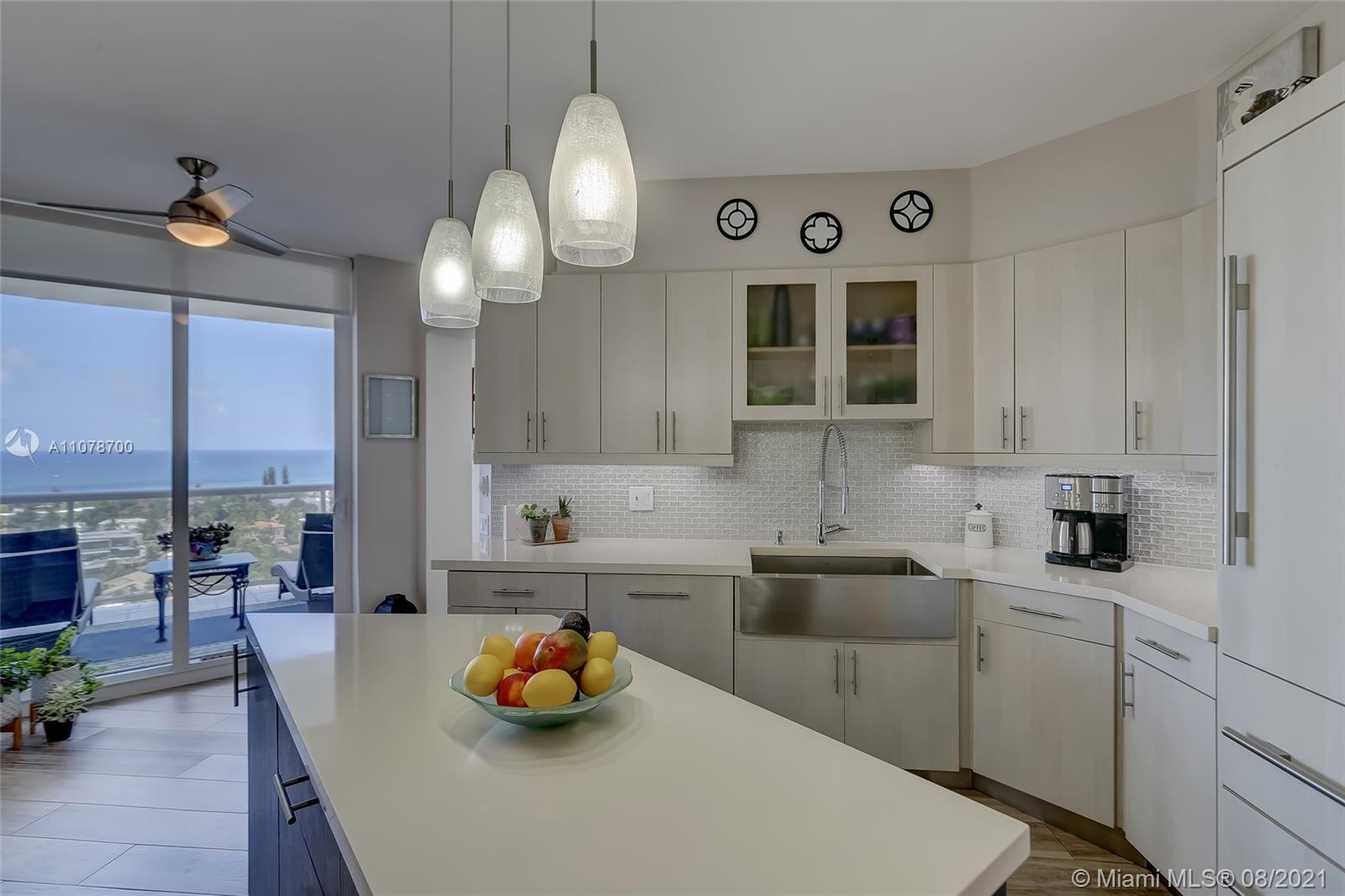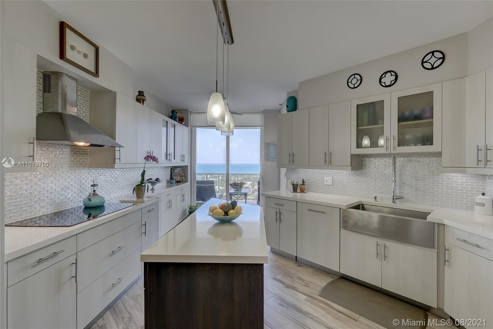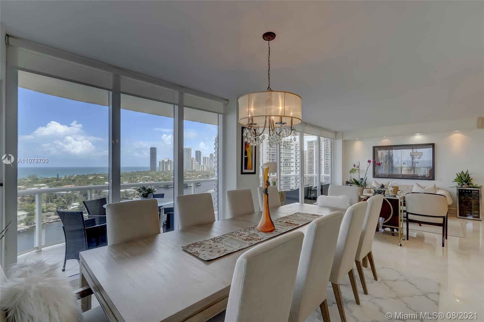 Enter this luxurious residence through your private elevator and immediately enjoy breathtaking Ocean and Intracoastal views seen from within the unit. Huge wraparound balcony accessible from every room. Direct East and SE views in the highly desirable line 02. Features marble floors throughout, Italian porcelain tile in two of the bedrooms, open and spacious concept, floor-to-ceiling hurricane impact windows. Contemporary kitchen, Sub Zero refrigerator, dual wall oven & quartz counters. Custom-made closets. The 3rd bedroom is being used as a den/home office. Prestigious One Island Place in Aventura is a resort style community: State of the art fitness center, spa w/ private treatment rooms, sauna, steam room, 2 pools, 3 hot tubs, café, 2 tennis courts. 2 marinas located walking distance.