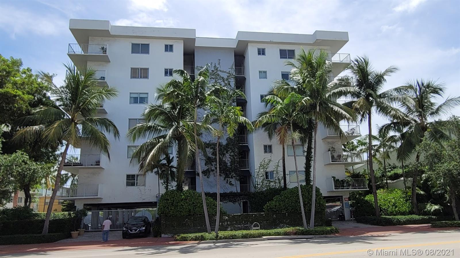 SOUTH BEACH GEM, 1/1.5 CORNER UNIT WITH A WRAP-AROUND BALCONY FACING ALTON ROAD ON ONE SIDE AND NORTH ON THE OTHER. WALK-IN CLOSET, IMPACT WINDOWS, AND SLIDERS. SMALL GATED BUILDING WITH SECURE LOBBY ENTRY, ONE COVERED ASSIGNED PARKING SPOT. LAUNDRY FACILITIES ON EACH FLOOR AND POOL. 40 YEAR CERTIFICATION PASSED, WATER-RISER HAS BEEN CHANGED IN ENTIRE BUILDING AND ROOF JUST RECENTLY REPLACED. ALL RENOVATIONS DONE TO CODE WITH PERMITS AND ALL ASSESSMENTS HAVE BEEN PAID.