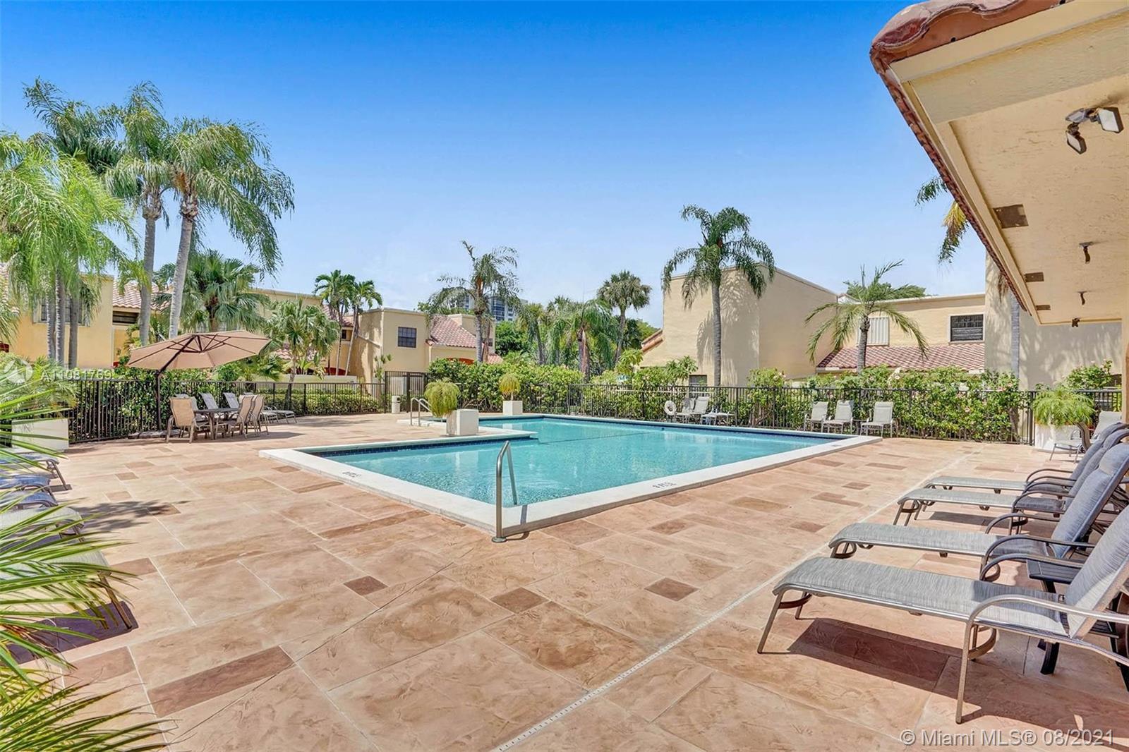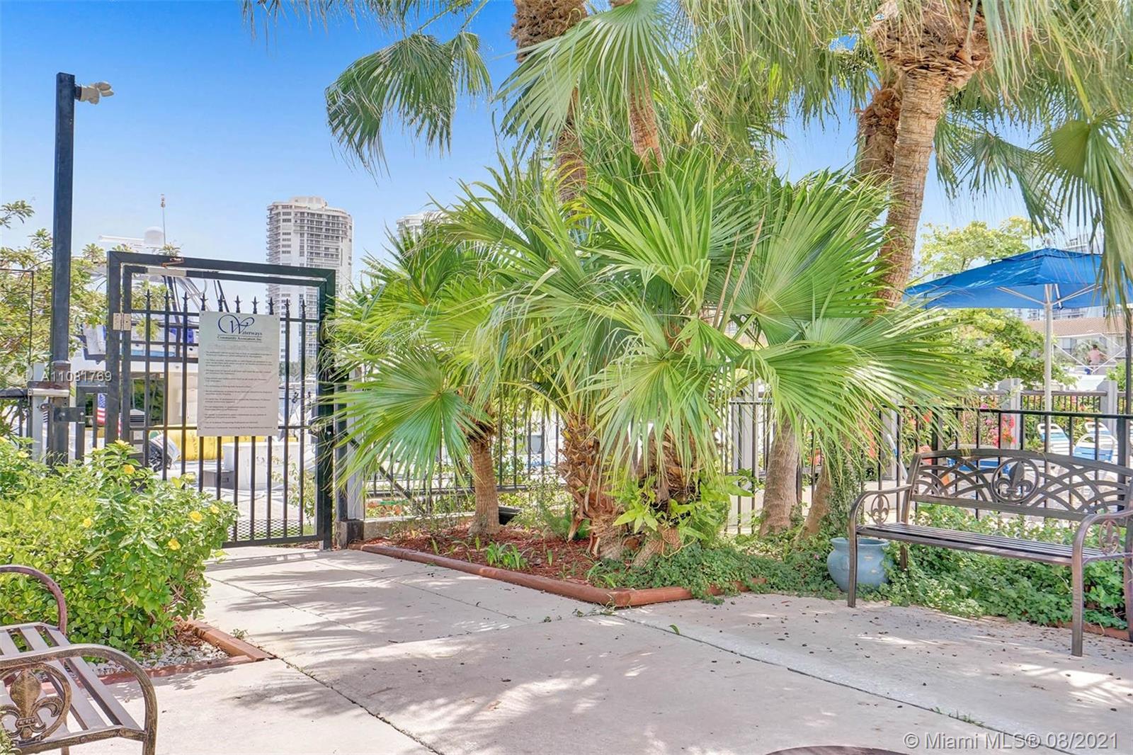 New on the market is one of the most desirable corner two-story townhouse. Open redesigned floor plan boasts volume ceilings. The home has been completely renovated several years ago: state-of-the-art Italian kitchen, modern countertops, backsplash, under-cabinet lighting, ss appliances, build-in bar. Safe much sought-after guard-gated community is located on the Aventura Waterways, a waterfront promenade, featuring famous shops, restaurants & GYM all within walking distance from your backyard. Well-managed and maintained, financially-stable community is lavishly landscaped. One of the best locations in Aventura, Turnberry golf course, houses of worship, Aventura Mall, Whole Foods, Gulfstream Park are all walking distance from the community. A-rated public schools and ACES Charter School.