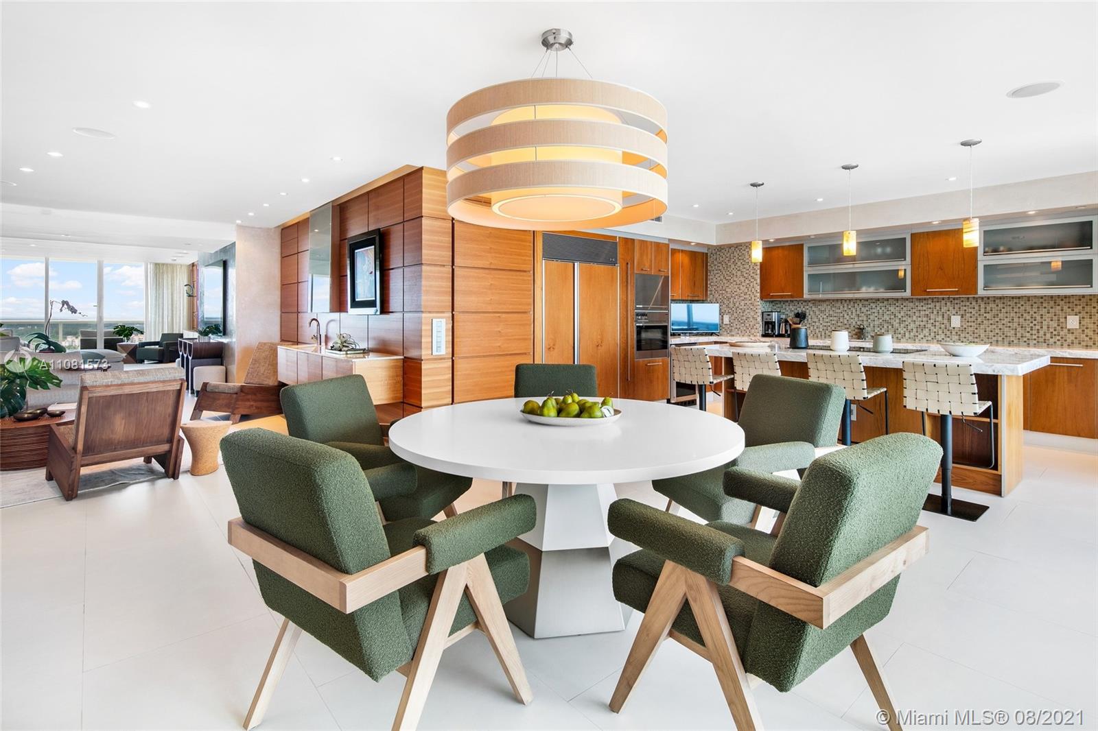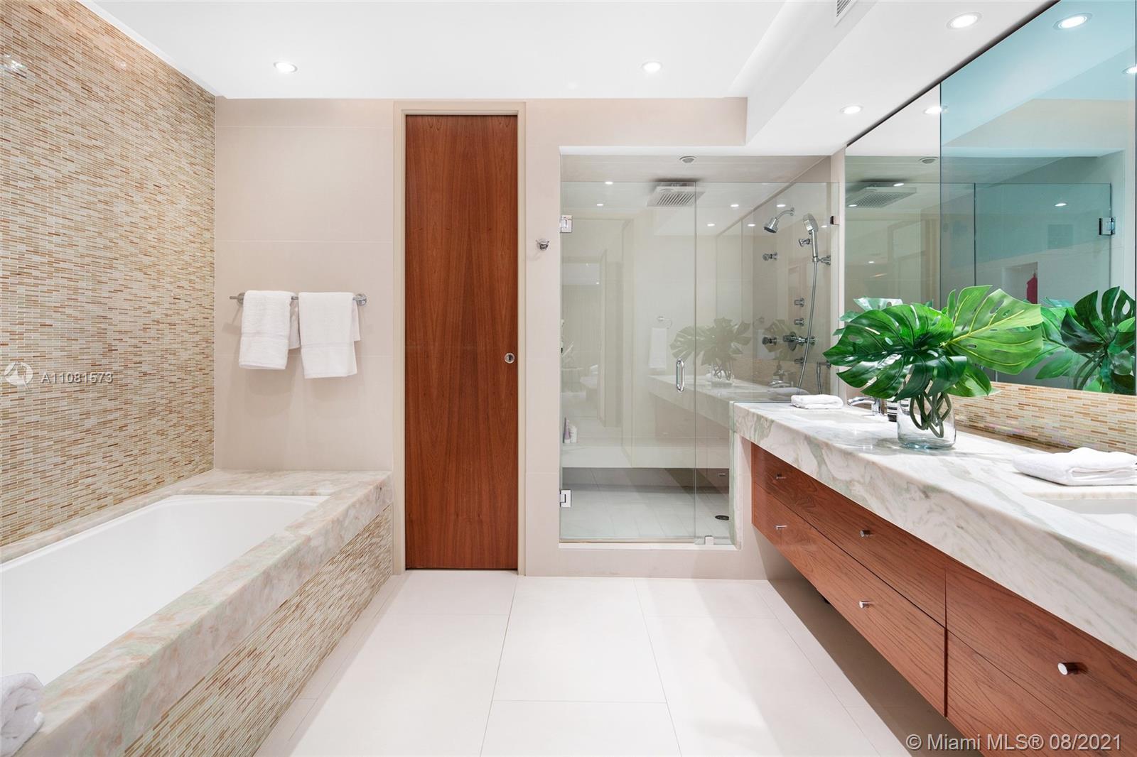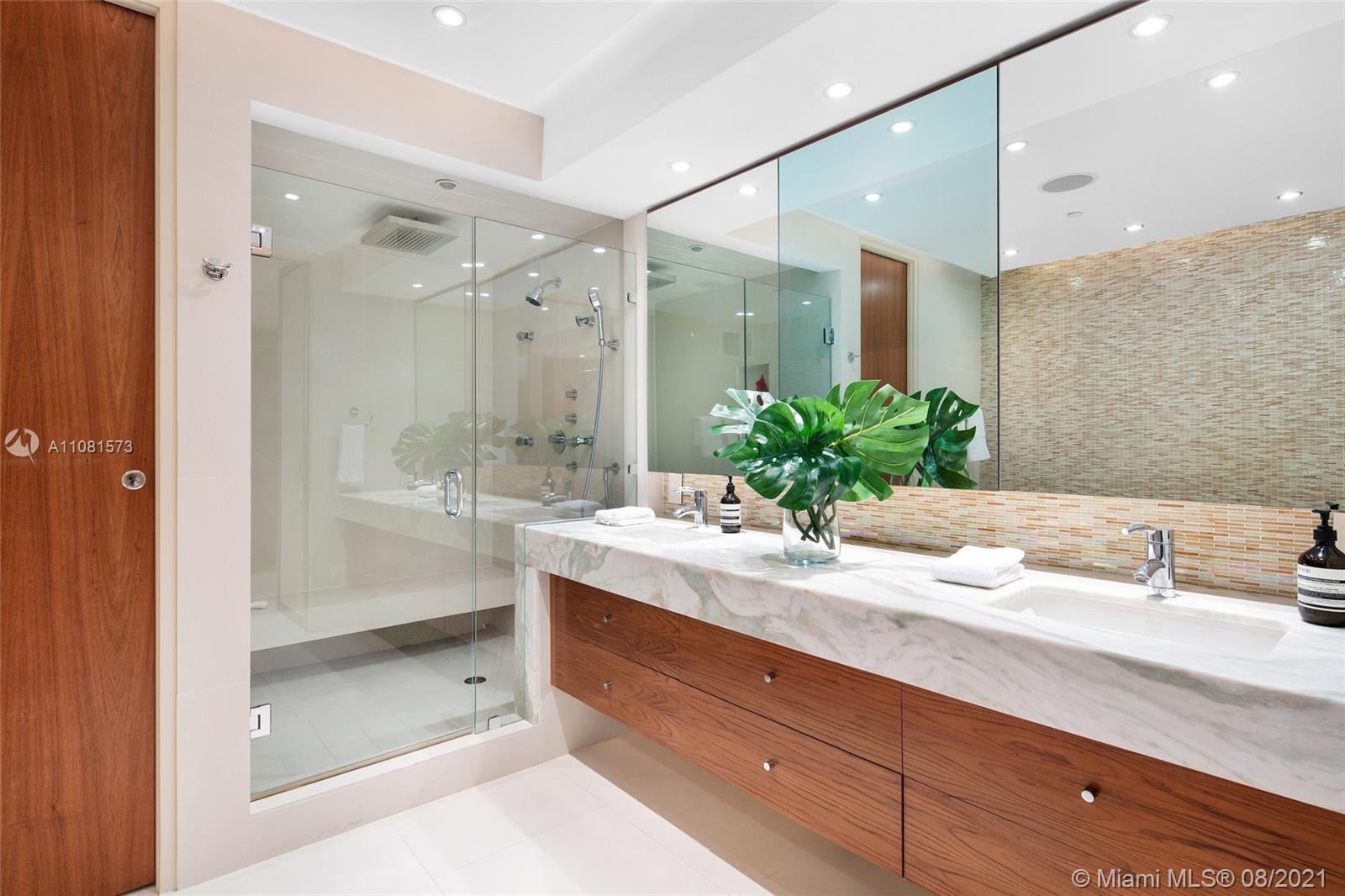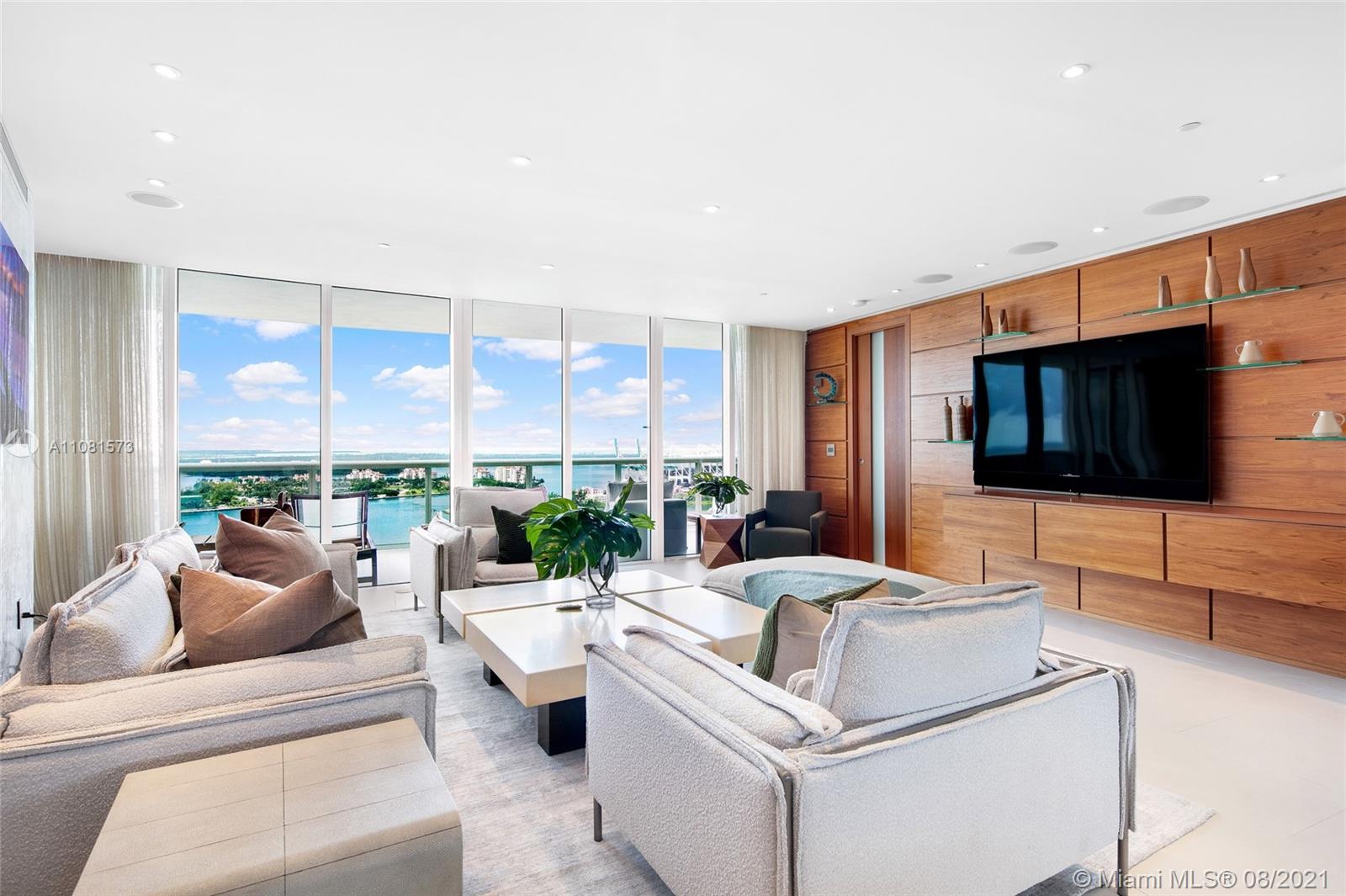 This 2,974 SF home in the sky is what Miami living is all about. Located in the exclusive Murano Grande, one of South of Fifth’s most coveted buildings, there is no doubt you will enjoy the ultimate in luxury living in this stunning contemporary unit. A private elevator foyer opens to a beautiful flow-through floorplan offering breathtaking views from floor to ceiling windows of the ocean, Fisher Island, Downtown Miami & Biscayne Bay. Features: Luxurious custom finishes, Legrand lighting system, automatic curtains, 2 expansive balconies, wet bar w/ hidden built-in storage, gourmet kitchen, Sub Zero fridge, wine cooler & Miele appliances. With balcony access and stunning views from every room the principal bedroom offers large his/hers walk-in closets, tub & a large rainfall shower.