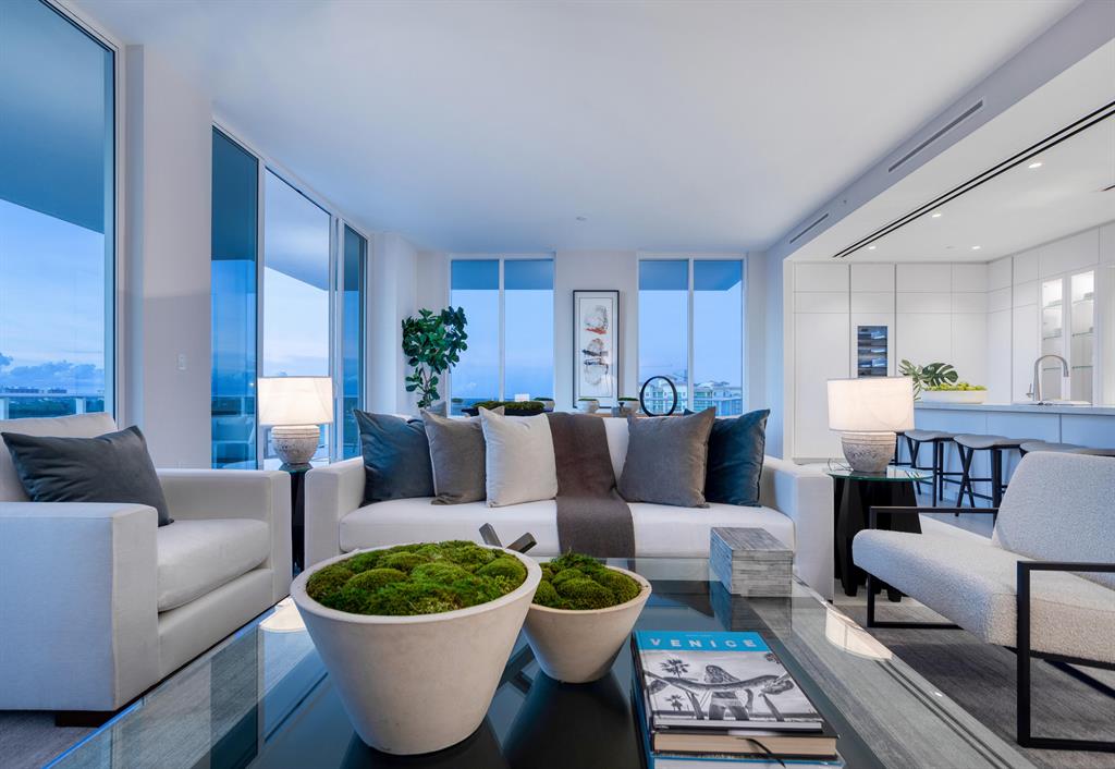SPECTACULAR SOUTHEAST PENTHOUSE AT THE BRAND NEW ALINA IN BOCA RATON. SWEEPING VIEWS OF THE BOCA RESORT GOLF COURSE ALL THE WAY EAST TO THE OCEAN. ARRIVE FROM YOUR PRIVATE ELEVATOR FOYER TO A BRAND NEW, NEVER OCCUPIED PENTHOUSE SPLENDOR! HIGH CEILINGS, FINE FINISHES AND FILLED WITH AMAZING FEATURES AND MAJESTIC VIEWS! CORNER GREAT ROOM WITH HIGH PENTHOUSE CEILINGS AND OPEN TO STUNNING SCAVOLINI ISLAND KITCHEN WITH MIELE APPLIANCES. FLOOR TO CEILING SLIDING GLASS OUT TO HUGE WRAPAROUND BALCONY FOR INDOOR OUTDOOR ENJOYMENT. MASTER SUITE WITH DOUBLE CLOSETS AND DOUBLE BATH AND GLASS DOORS TO BALCONY. 3 BEDROOM SUITES AND SEPARATE DEN/OFFICE ALONG WITH A LARGE UTILITY ROOM AND ABUNDANT STORAGE. LIVE IN THE HEART OF BOCA WITH GATED SECURITY, FINE SERVICES, VALET, SPA, POOL AND FITNESS CENTER.