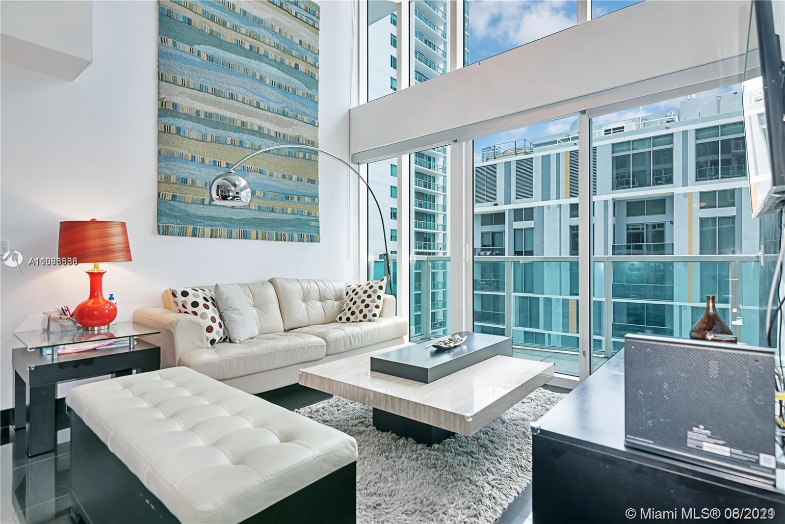 Large 2 bedroom + Den & 2 full bath loft style unit. Two story unit with two separate balconies. Large master upstairs with large finished walk-in closet & private balcony. Den is also on the second floor. Plenty of storage throughout unit. FURNITURE INCLUDED IN SALE. Building is next door to Metro-Mover station & steps away from Brickell City Centre & Mary Brickell Village, restaurants, cafes, supermarket, nightlife, etc. Full service building with fitness center, sauna, steam room, hot tub, 2 pools, club room, pool table, ping pong table, BBQ grills and more. Lobby attendant with 24-hr security. ***SHORT TERM RENTALS OK MINIMUM 3 MONTHS** TAKE A LOOK AT OUR VIRTUAL TOUR ***