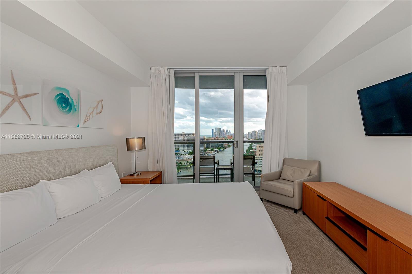 Amazing Apartment 2 Bedroom and 2 Bathroom Unit with South Views to Ocean and Intracoastal in a Full Services Condo Hotel Building, High Floor and best South View from Line 03 at 23er floor. Full furnished. You can split Unit in two apartments. Very Nice views of the ocean, city and intracoastal. Great Property for investors. No rental restrictions, allows daily rentals! Could be rented it as 2/2 or 1/1 and 1 Studio Unit with 2 private entrances. Enjoy resort style amenities rooftop infinity pool with cabanas, valet parking, complimentary shuttle to private 3 story Hyde Beach Club, with pool and restaurant, fitness center and much more