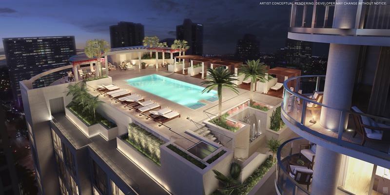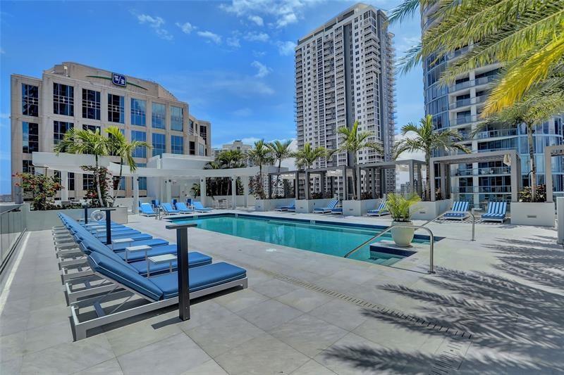 Downtown's newest, most prestigious address awaits: 100 las E Olas, Fort Lauderdale's tallest highrise! From appliances to finishes, no expense spared on this 2 bedroom plus den with 3 full baths. Smart technology throughout, gourmet kitchen with quartz counters, Nolte European cabinetry, Jenn-Air Euro-stainless appliances & Grohe & Koehler fixtures. Floor-to-ceiling windows flood the open design with natural light! Enjoy expansive views of Las Olas and the gorgeous resort-style pool deck from the 500+sf glass balcony of this D model unit. Den is large enough to convert to 3rd bedroom! Includes 2 PARKING spaces. Owner amenities are 4-star rated & include Fitness Center, gorgeous pool & sundeck, resident Club Room and more. Hyatt hotel on lower floors features restaurants & bars.