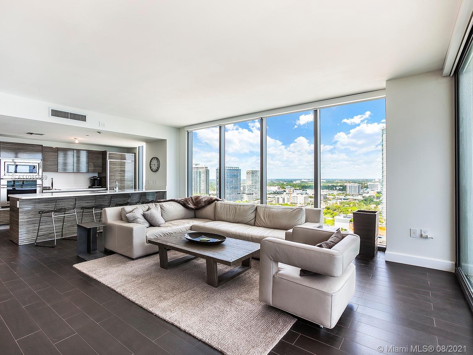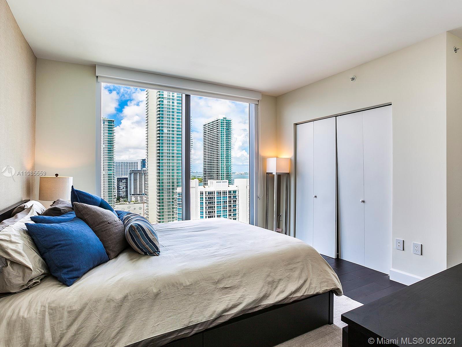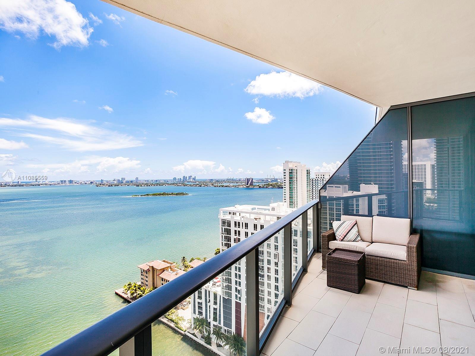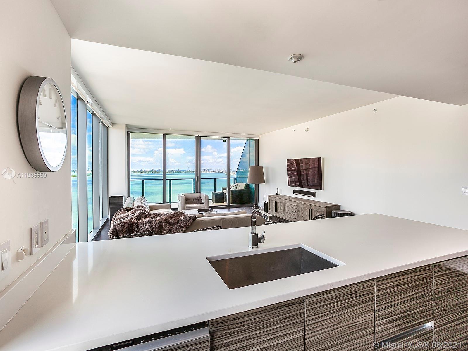 Spectacular direct bay views from this large 2 bedroom, 2 bathroom, plus a den/dinning room, in Edgewater's Icon Bay. Enter directly from the elevator, into the units private foyer, and enjoy its 1,300 sqft of open floorplan and all of its modern finishes, including automatic shades and blackout shades, quartz counter tops, and porcelain wood floor tiles. Relish in the building's resort-like amenities, which include an infinity pool, tennis courts, fitness center, game room, paddle boards for the bay, and much more. The unit includes one assigned parking space and additional parking can be arranged.