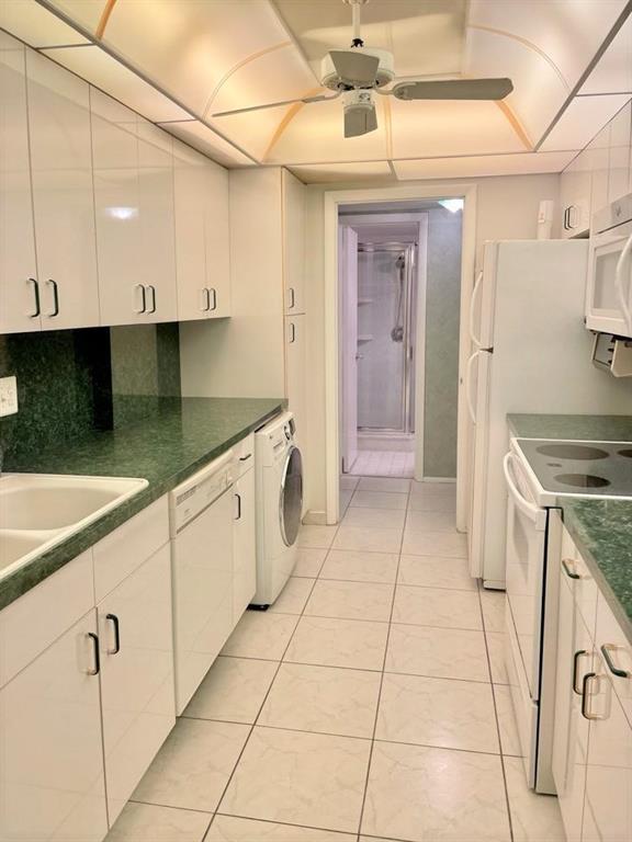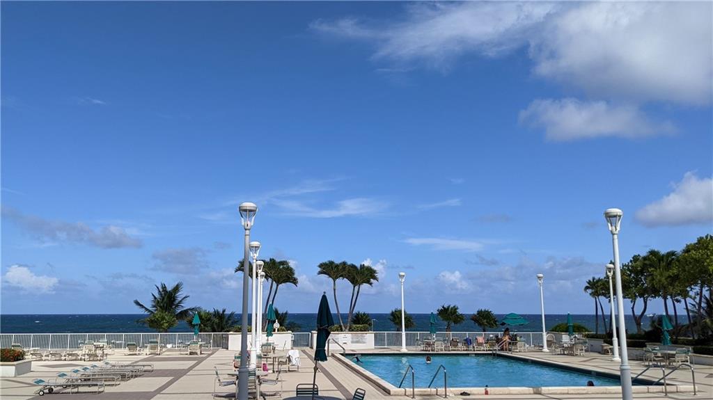 Enjoy spectacular panoramic sunset views from this 1 bedroom, 2 FULL bathroom, beachfront condo, featuring impact windows, tiled floors in all rooms, updated kitchen, sun-soaked den, balcony, in-unit washer/dryer combo; master walk-in closet. Building has passed 40 year inspection, and includes 24-hour staffed security gate; an expansive deck with heated pool, grill area, shuffleboard; fitness center; game room with table tennis, billiard and card tables; library; sauna rooms; basement cage storage for each unit; indoor garage space, and access to tennis court of adjacent Aquazul high-rise. The inviting community and well-managed building is on a quieter section of the beach and A1A, yet within walking distance to shops and restaurants of Lauderdale-by-the-Sea.
