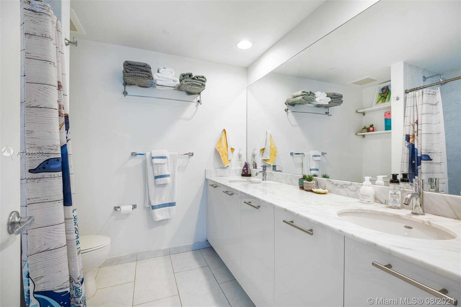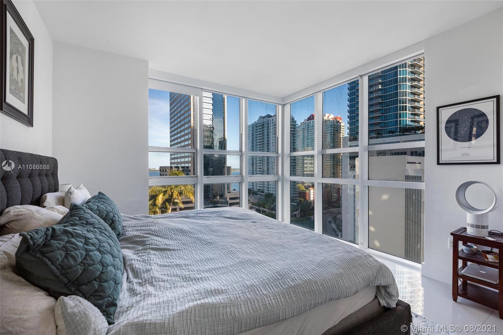 Welcome to the best deal in all of Plaza Brickell for a large 2bed-2.5bath corner unit with fantastic skyline & partial water views. Features include: white porcelain floors, floor to ceiling glass windows, large living space, wrap around terrace, chef kitchen w/ss appliances, w/d & more. The Master bedroom has floor to ceiling glass windows, huge walk in closet w/custom built-ins, and a huge master bathroom on-suite with private tub & separate shower. The guest bedroom is another master suite w/3 large closets, access to the terrace & also an on-suite large bathroom with double vanities & tub. Guests have access to their own half bathroom. Plaza is situated in the best location in Brickell steps from shops and the malls and restaurants. Hotel like amenities: pool, gym & business center.