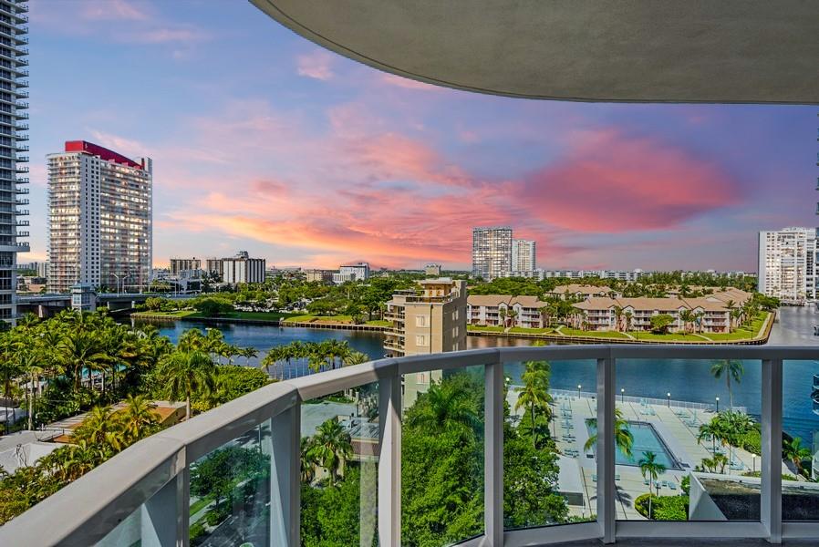 Fantastic corner unit with wraparound balcony in The Hallmark. Enjoy beautiful Intracoastal views, sunsets and a peek-a-boo ocean view as well. This unit has all impact doors and windows (replaced within the last year). The kitchen has been opened up partially to the dining/living room. Amenities include valet, secure lobby with doorman, exercise room, pool, sauna, BBQ area, billiards & more! Minutes to malls, restaurants, casinos & airports. I covered parking space & 1 storage locker included.