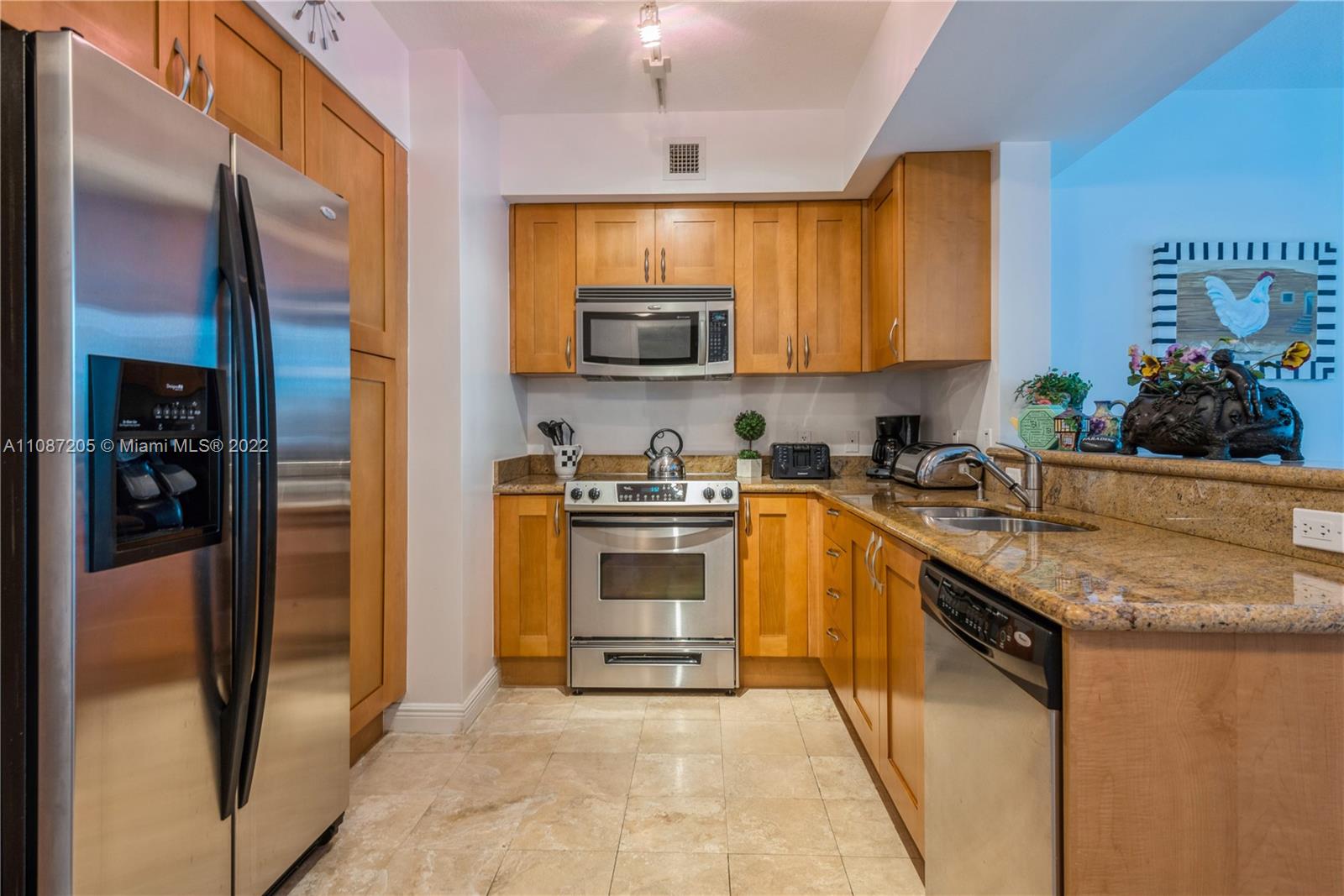 Spectacular opportunity to purchase a DUO 2nd floor apartment. This 1 bedroom 1.5 bath unit with a LARGE balcony overlooks lush landscaping and pool area. Impact Glass. Balcony accessible from all rooms. Stainless appliances, Granite counter tops, Washer/ Dryer, GIGANTIC storage room and Covered parking on the same floor as the unit. Appliance contract, cable, internet, hot water all included in maintenance. You can walk to beach, restaurants, grocery stores, Starbucks etc. Sold subject to 6 month lease starting 9/1/2022 at a rent of $2400/mo