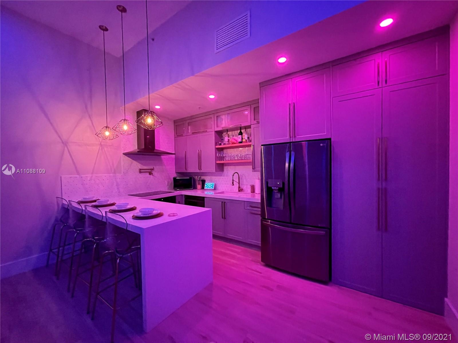 Rare find! Tastefully remodeled unit in restored Temple by well-known architect, Chad Oppenheim. Featuring towering 12.5 Ft. ceilings, unique mood lighting throughout controlled by a state-of-the-art smart hub, modern custom kitchen with Quartz waterfall, oversized cabinets, black stainless steel appliances, and impact windows. Immense bathroom shower with dual showerheads, a beautiful floating toilet, ceramic vanity, and a round backlit fog-proof mirror. Spacious master bedroom with custom-built-in floor to ceiling closet as well as a separate walk-in closet. Tons of storage, central A/C, and a washer/dryer in the unit (3 things not easily found in the area). Fully furnished with high-end mid-century modern furniture throughout. The embodiment of turn-key, only four blocks from the beach!