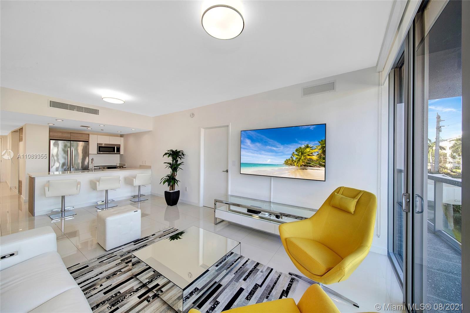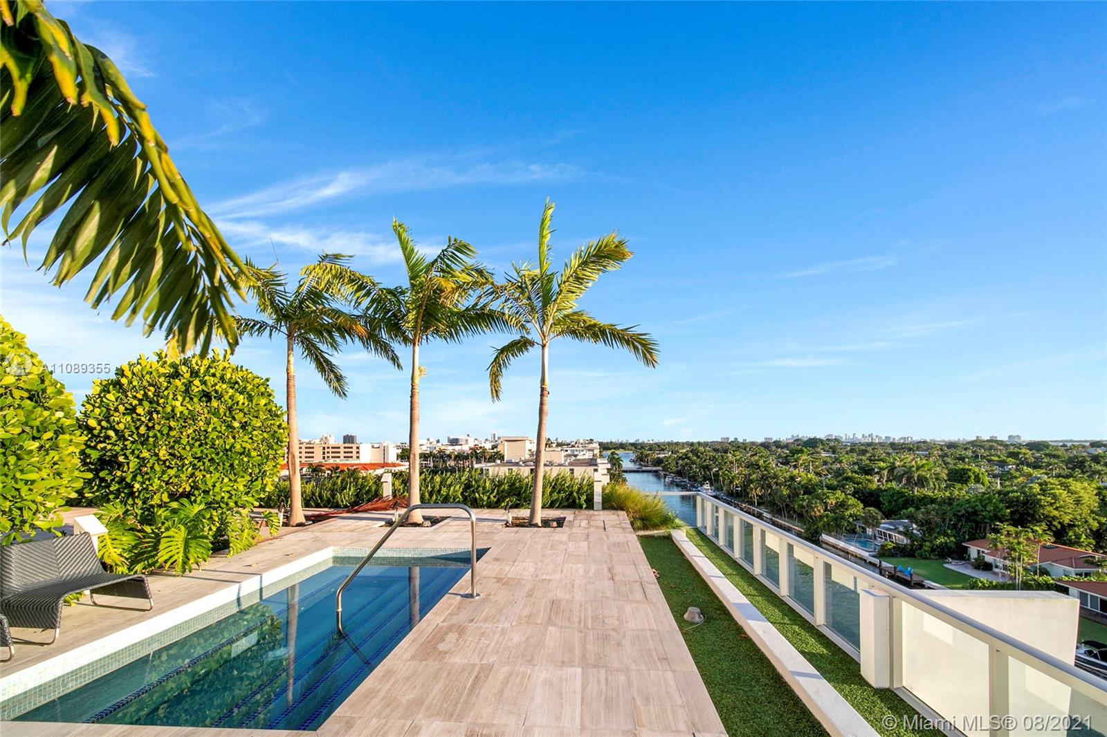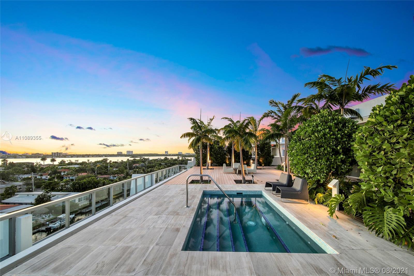 Beautiful waterfront boutique building designed by Arquitectonica. Only 57 units on this building located on Bay Harbor Islands sitting on the canal with amazing rooftop pool, hot tub and BBQ area. Unit comes completely furnished, never lived in. Walk to the beach, Bal Harbour Shops, houses of worship, great schools, golf course and restaurants. Safe and peaceful area close to everything. Two bedrooms plus enclosed den/office and 3 full bathrooms. Building has gym, storage, spa, rooftop pool, fireplace, party room, security and 2 parking spaces (lift system). Pets up to 40lbs allowed by HOA (1 pet per unit). CLICK ON VIRTUAL TOUR TO SEE VIDEO. Furniture available for sale also.