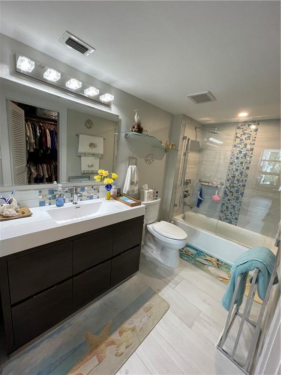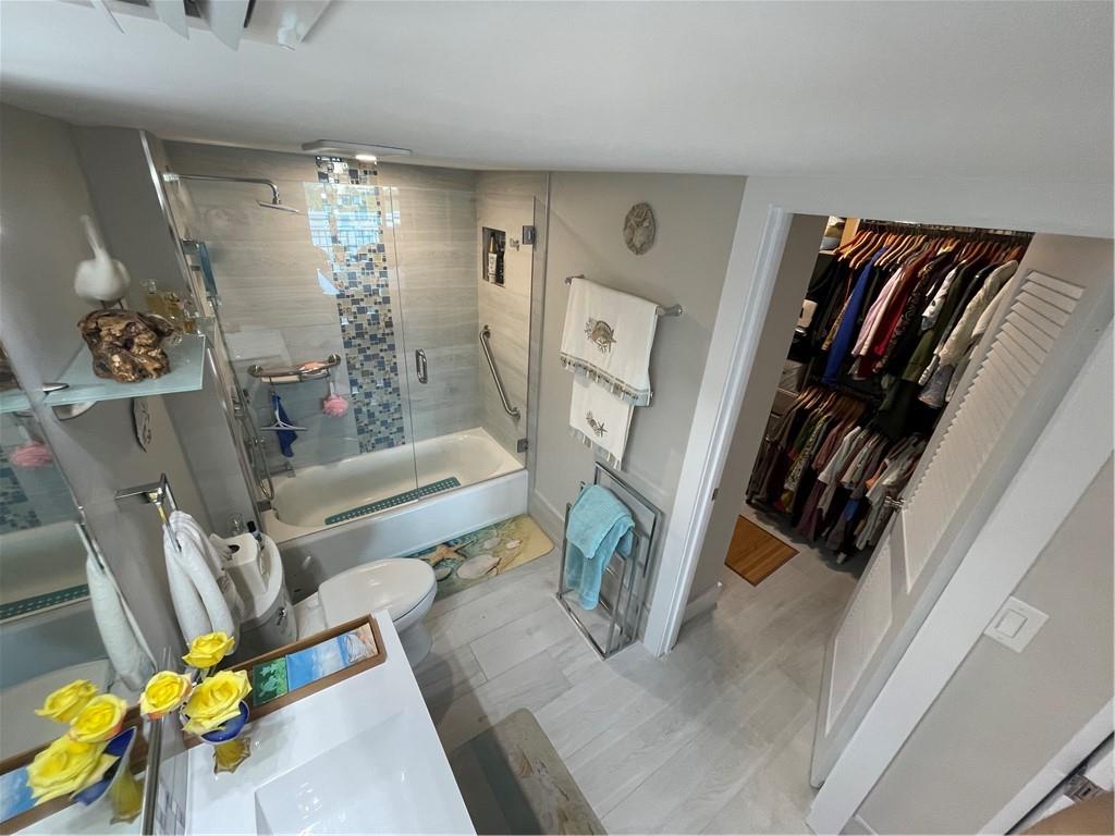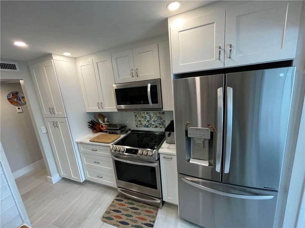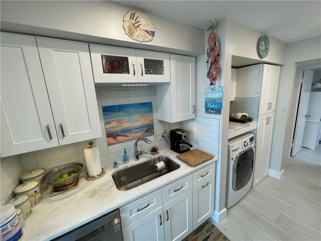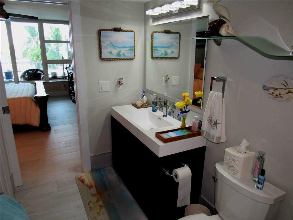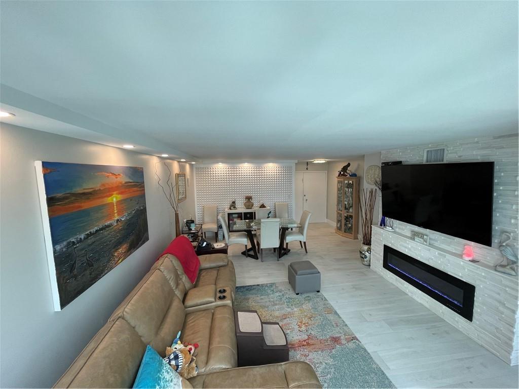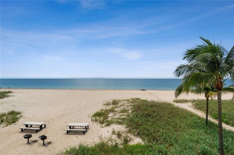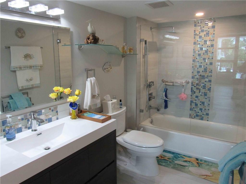 Unit completely renovated in 2019. 1 bedroom, 1.5 bathroom with a den and extra storage by front door, newly tiled floors, New AC, New Electrical, Full impact windows/doors, brand new kitchen cabinets / appliances, upgraded lighting, tiled balcony, in-unit washer/dryer combo, master walk-in closet, electric fireplace, automatic blinds and built in entertainment center. Building is a beachfront condo with easy access to a quiet section of Fort Lauderdale beach, has already passed 40 year inspection, 24-hour security, huge back deck with heated pool, grill area, shuffleboard; fitness center; game room, Tennis Courts, Pool and card tables; library; sauna rooms; basement storage and covered garage space. Walk/Bike distance to Assumption Catholic Church, Publix and Sea Watch Restaurant.