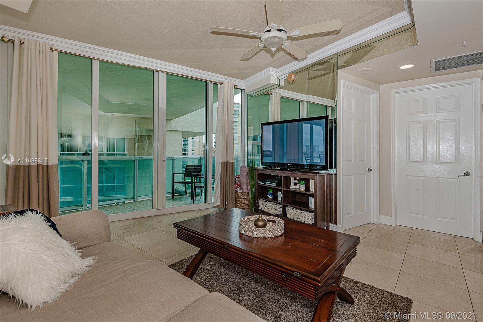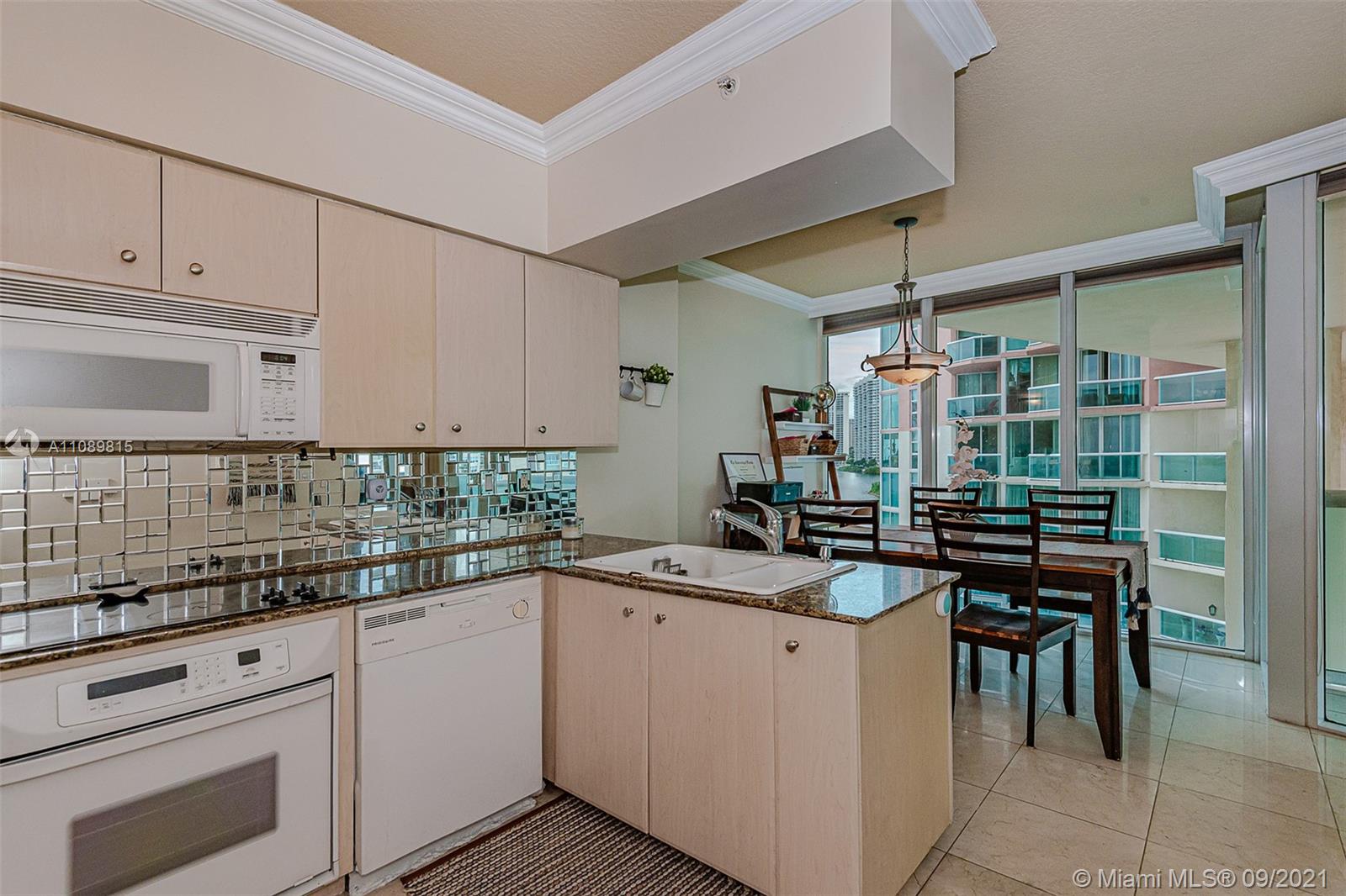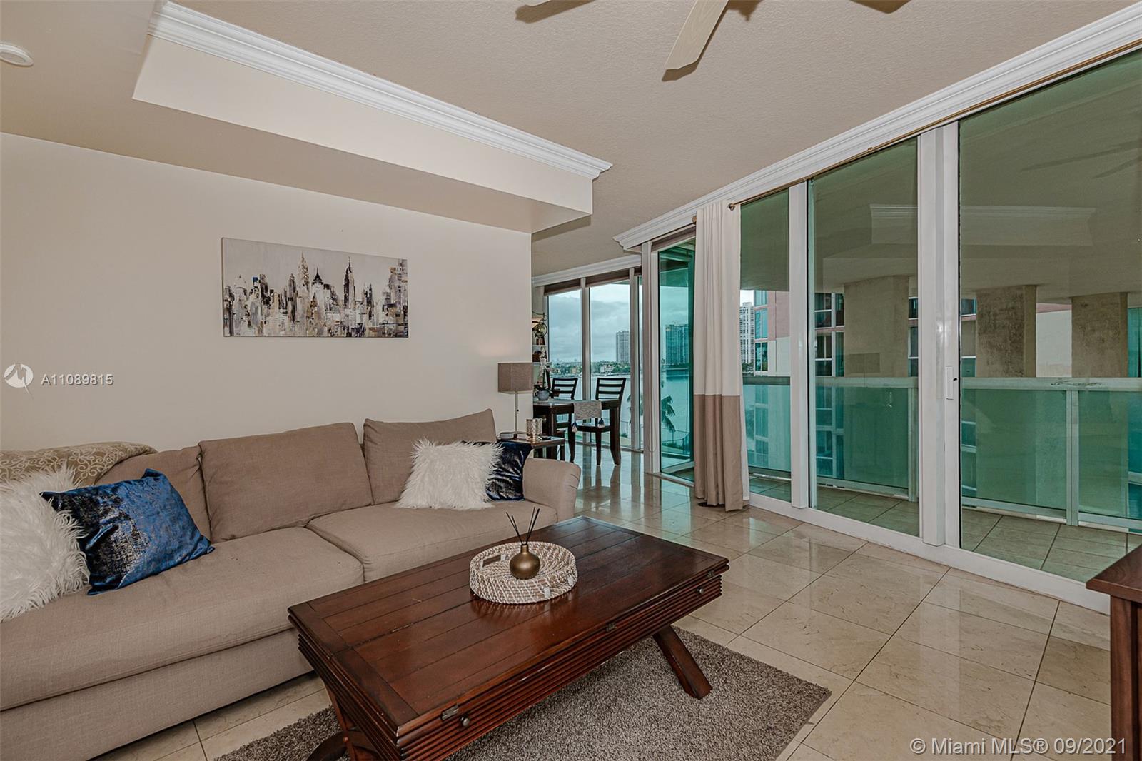 Beautiful 1/1 with lovely intracoastal views in high end luxury building.Marble floors throughout, large closet with built ins, separate dining area facing gorgeous view, only 2 apartments on the floor. Tons of light with large sliding doors and big windows.Fantastic 2 story fitness center, tennis courts, close to Founders Park, Aventura Mall and 5 minutes to the beach. Currently occupied by tenant who will stay or go with 45 day notice.