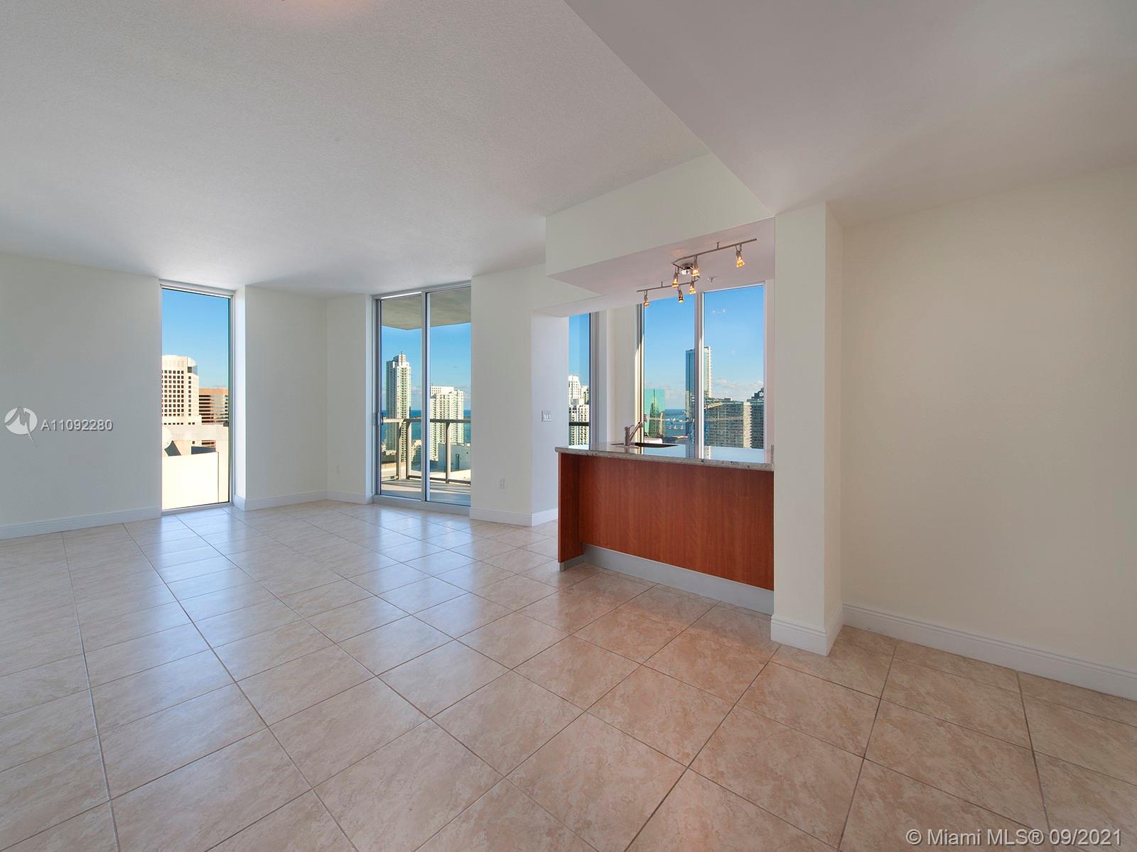 Stunning corner unit with breathtaking views of the Brickell Skyline and Biscayne Bay. This unit is tiled throughout and has custom cabinetry in both closets. This is one of the only two units with a semi private entrance on the 38th floor. Latitude is undergoing major renovations of the exterior and pool at no cost to the owners! The maintenance fee includes cable, water, hot water, and garbage. The unit comes with one assign covered parking. HOA fee will increase to 1022.55 Starting Jan 2022