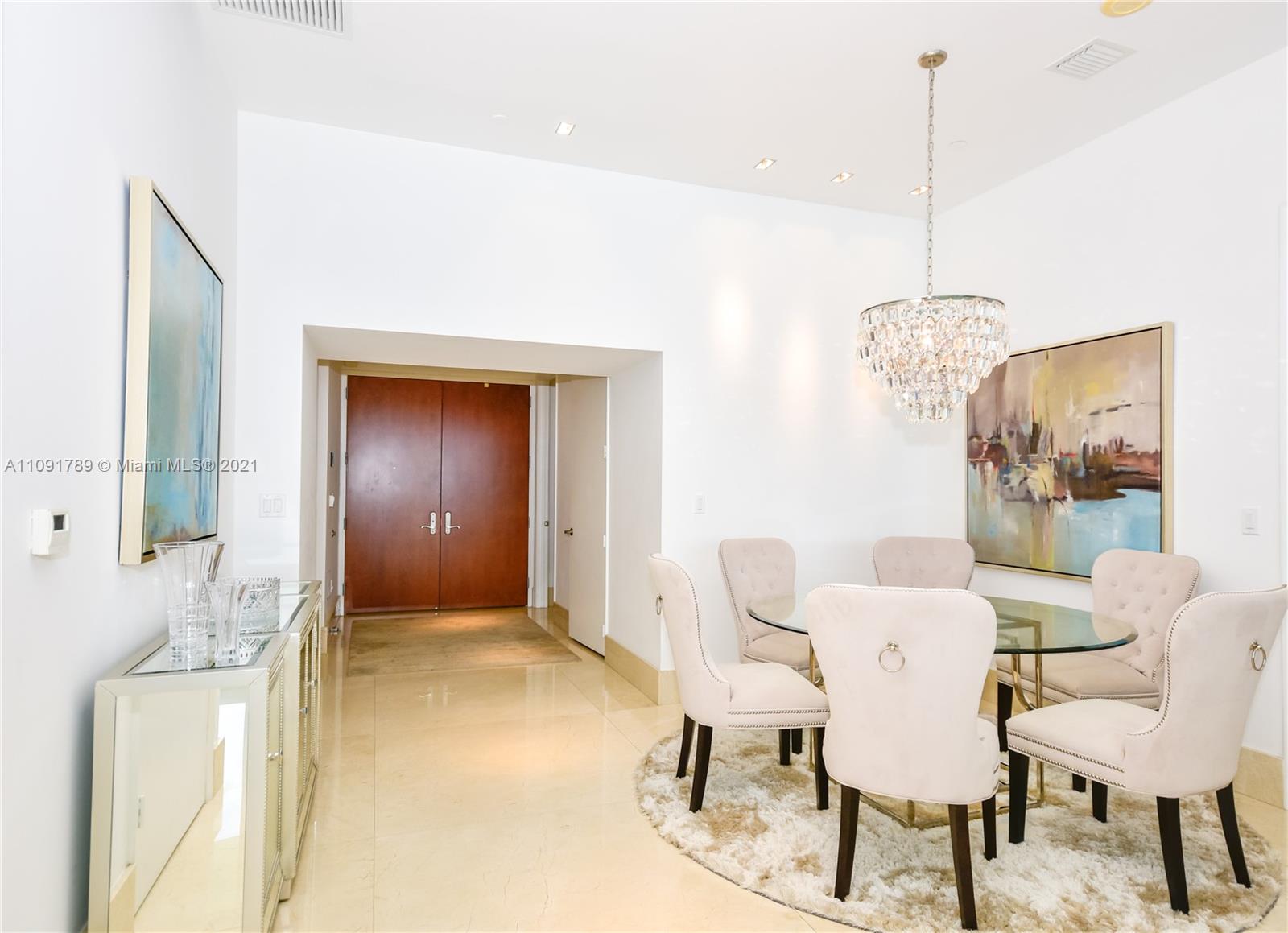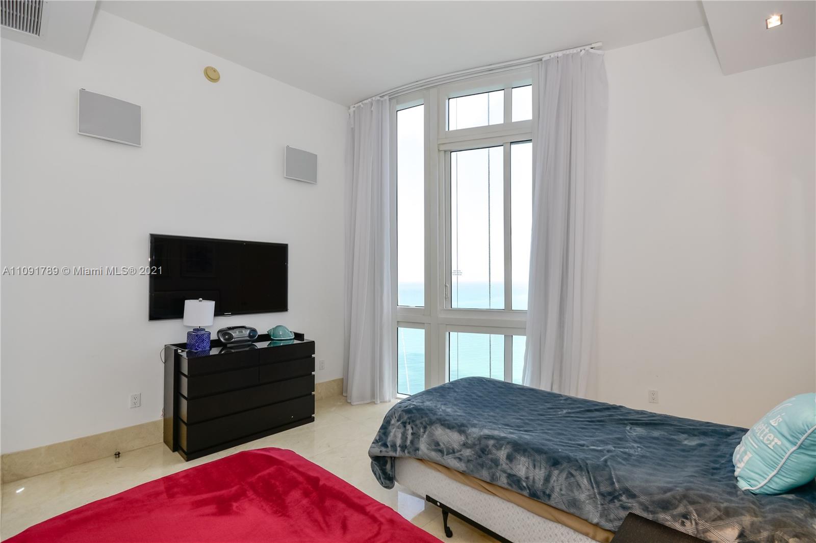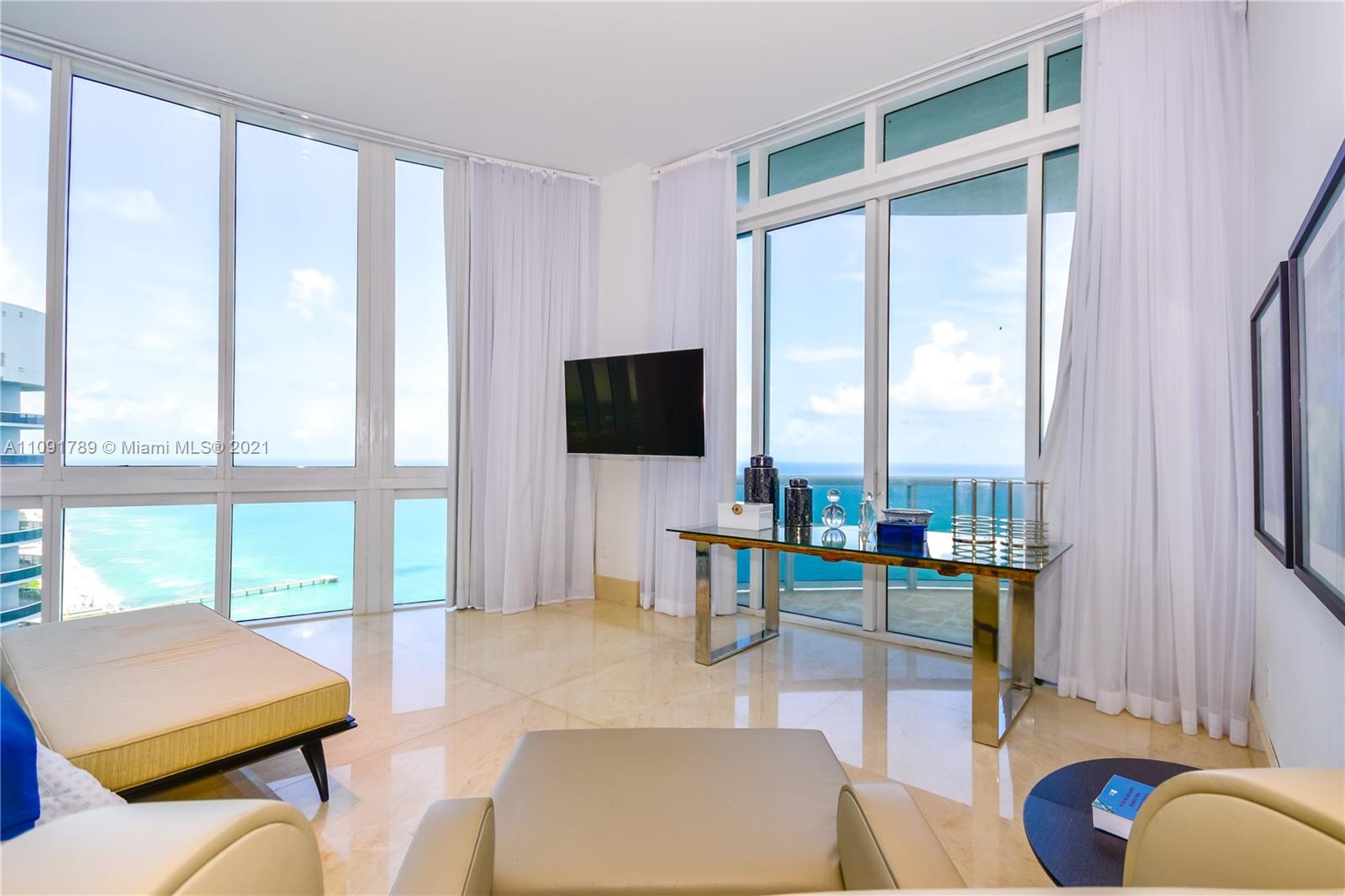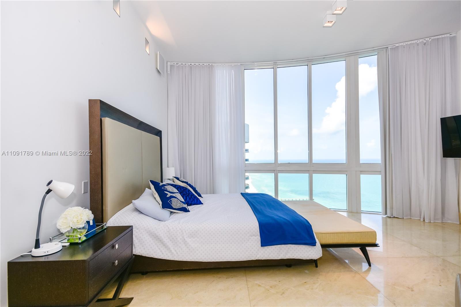 PRICED TO SELL! High floor unit with unobstructed ocean views from all three bedrooms and living room. All bedrooms have its own private bathrooms with floor to ceiling windows facing east. This unit has higher ceilings than other floors (12’feet), private elevator entrance, marble floor 48x48 , and marble baseboard. Unit has professional sound and illumination system. The building has high end amenity services, full onsite restaurant with unit & beach service. Nice gym, with spa and yoga room, full steam saunas. Location is minutes away from Bay Harbor shops and Aventura Mall Easy to show.