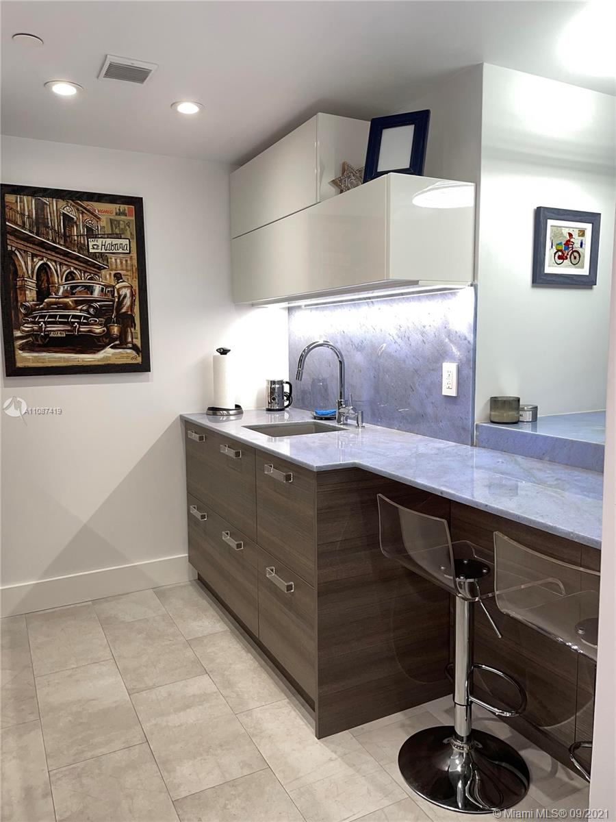 Located in the heart of South Beach, here is your opportunity to own a fully renovated/studs up and spacious 1 bedroom and 1 bath w/stunning skyline/sunset, Biscayne Bay & Iconic Miami Downtown views. Unit is move-in ready with porcelain flooring throughout, new AC & Ducts, LED Lighting throughout, Custom European cabinetry kitchen w/ Liebherr refrigerator, induction cooktop, full-height pantry soft close doors & plenty of windows for a light and bright space with natural sunlight. Custom Euro closets. Full remodeled enlarged bathroom. Custom walls & bar unit. Garaged Assigned Parking Spot near the elevator. Mirador is a full-service building with valet parking, heated pool, sauna, jacuzzi, convenience store, 24h security, spa, & a state-of-the-art fitness.