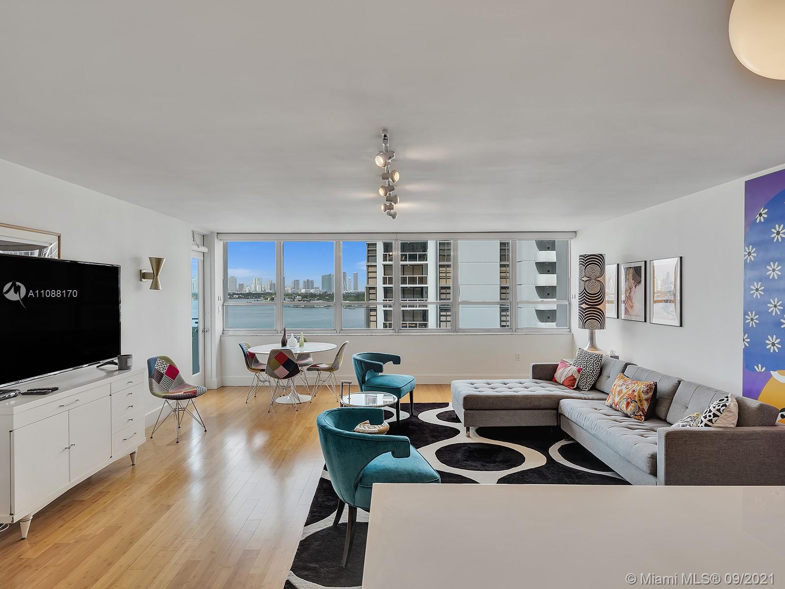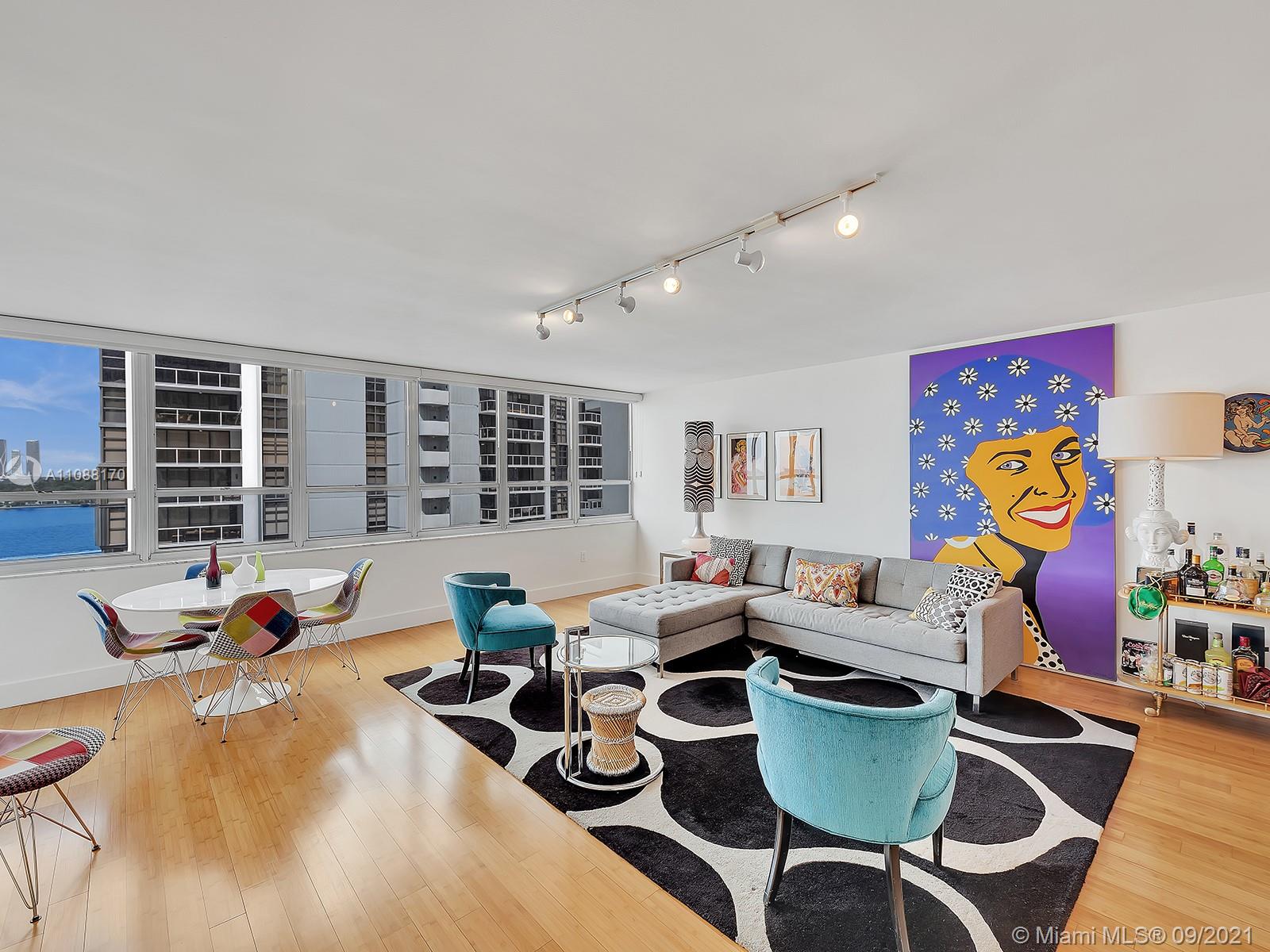 Gorgeous. Step in and fall in love. Views of the bay, downtown Miami, clear blue skies, and even storms as they roll by are stunning. Tons of windows and natural light, oversized living room & balcony, lots of storage and open kitchen. Building undergoing massive renovation-new doors are installed, new elevators, new hallways including fire sprinklers, all underway-COMPLETION of Hallways EST 1/2022. Pet friendly, washer/dryer can be installed, FUN-tastic location. Building has great amenities: Gym, heated pool, BBQ, sauna, floating dock, bike storage ++.