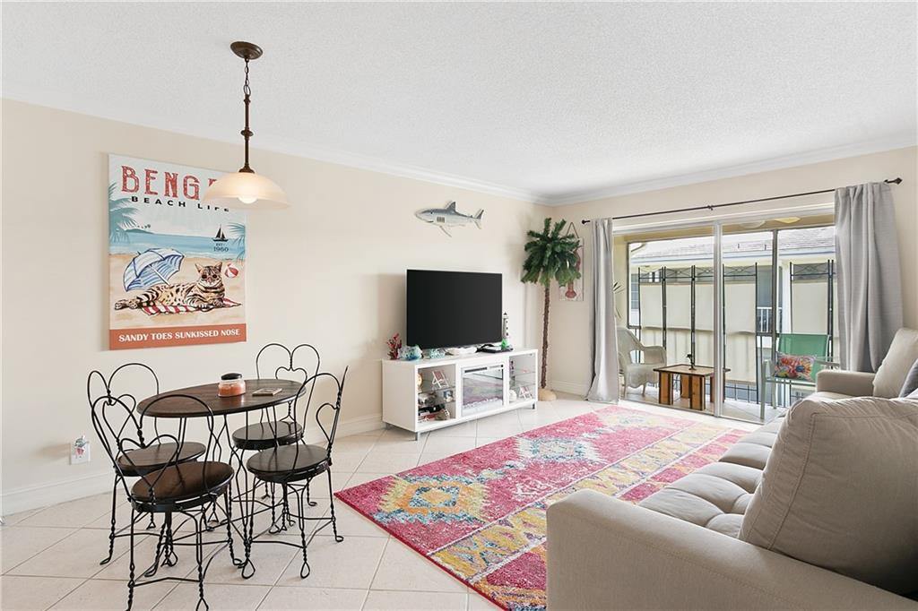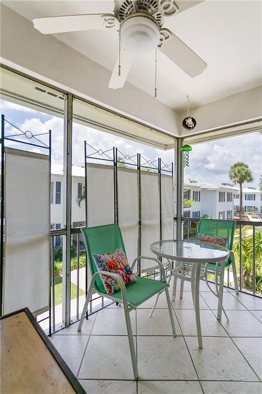 Lovely top floor unit with screened in balcony only 10 minutes from the beach. This beautiful unit features updated kitchen and appliances, white cabinetry, and an updated master bathroom. Tile floors throughout living areas. Master Bedroom features walk-in closet. The community has a heated pool with rentable cabana's, sauna and gym as well as a picnic/BBQ area with grill, shuffle board court, billiards room, and a beautiful courtyard just outside a large entertainment room for your events. Storage unit comes with condo. Laundry is inside the building. This condo is a must see!