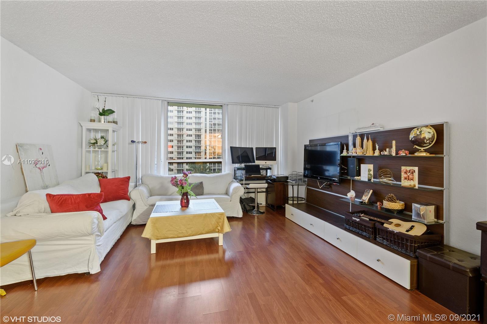 Great Location...unit with park and bay view. No balcony. Laminate wood floor in the living and carpet in the bedroom. Built-in walk-in closet. Fresh and modern furniture is included in the price. Do not miss this chance to own a ready-to-move-in unit at The Flamingo! No balcony and no parking space assigned.