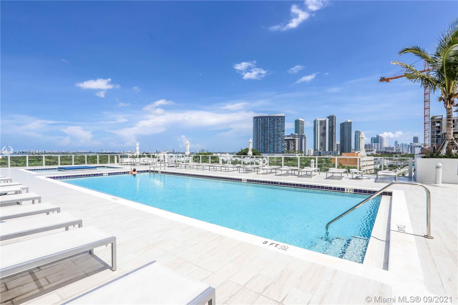 Boutique Condo development, just steps from Miami Design District, and close to Midtown & Wynwood. Large 1 bedroom 1 full bath 700 sqft. Open kitchen, top of the line appliances, Custom made closet, porcelain floors, washer and dryer inside the unit. One Assigned Parking. 24/7 Security. Top of the line amenities: Roof top terrace featuring barbecue area and hot tub, spa, gym, 55 Foot long pool overlooking Biscayne Bay & Miami Beach, fitness center, movie theater, kids room, and valet parking. Unit rented until Feb 28, 2022