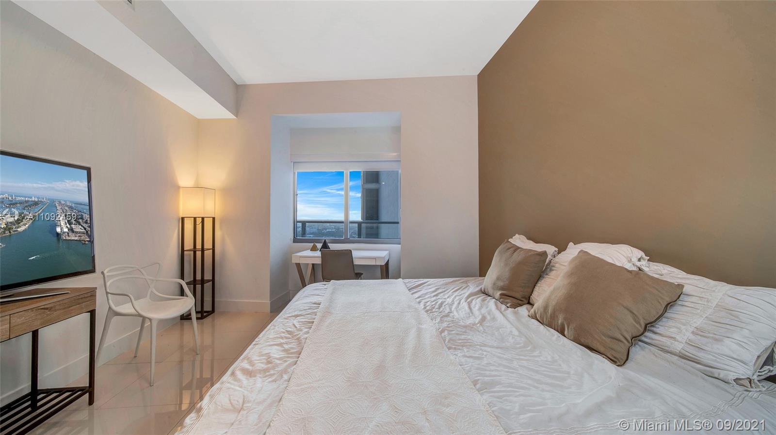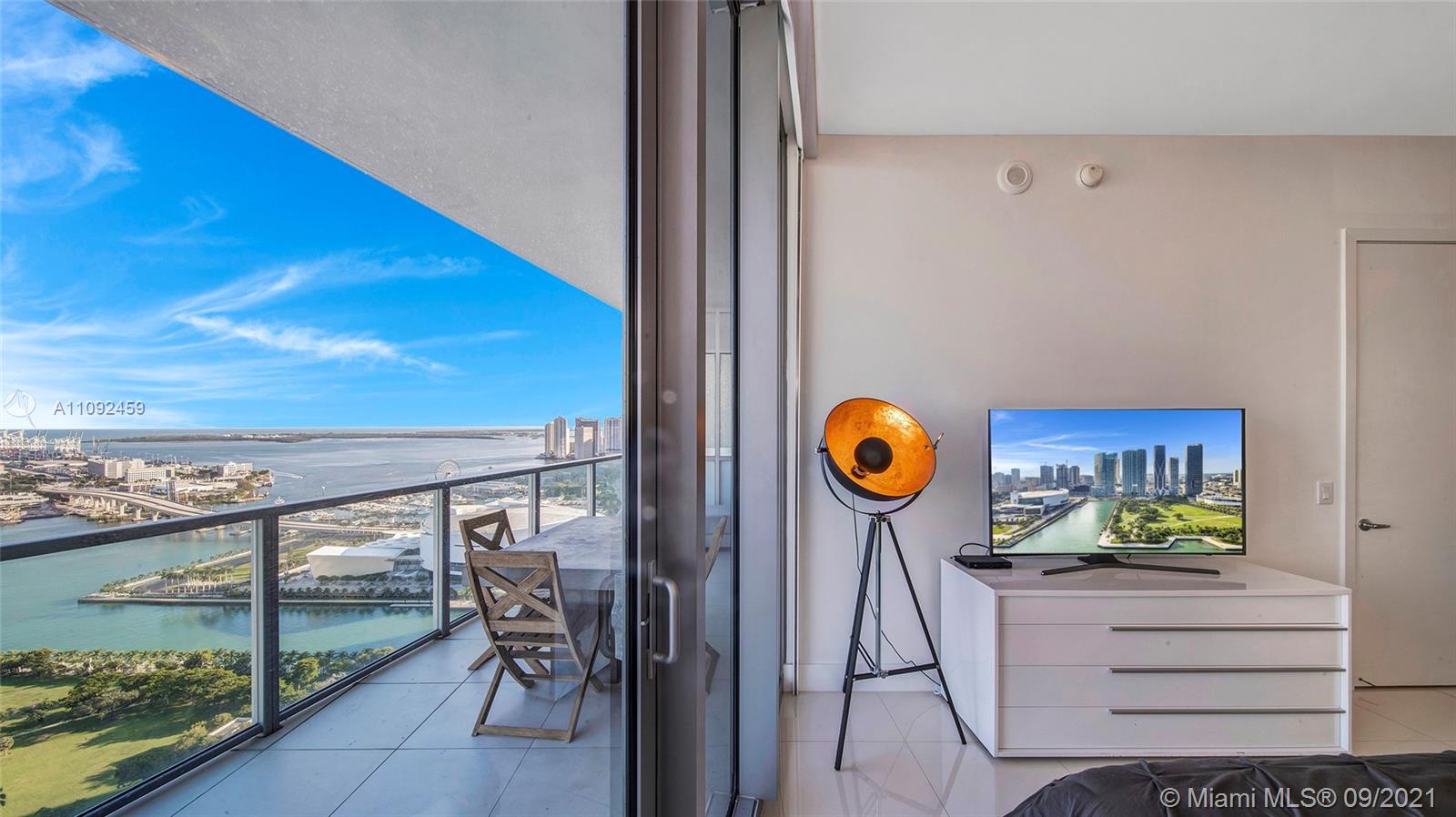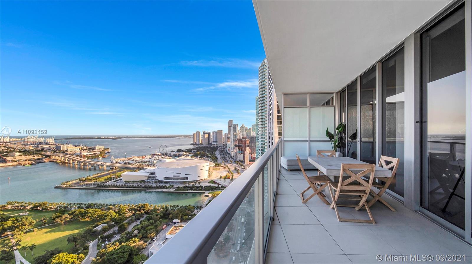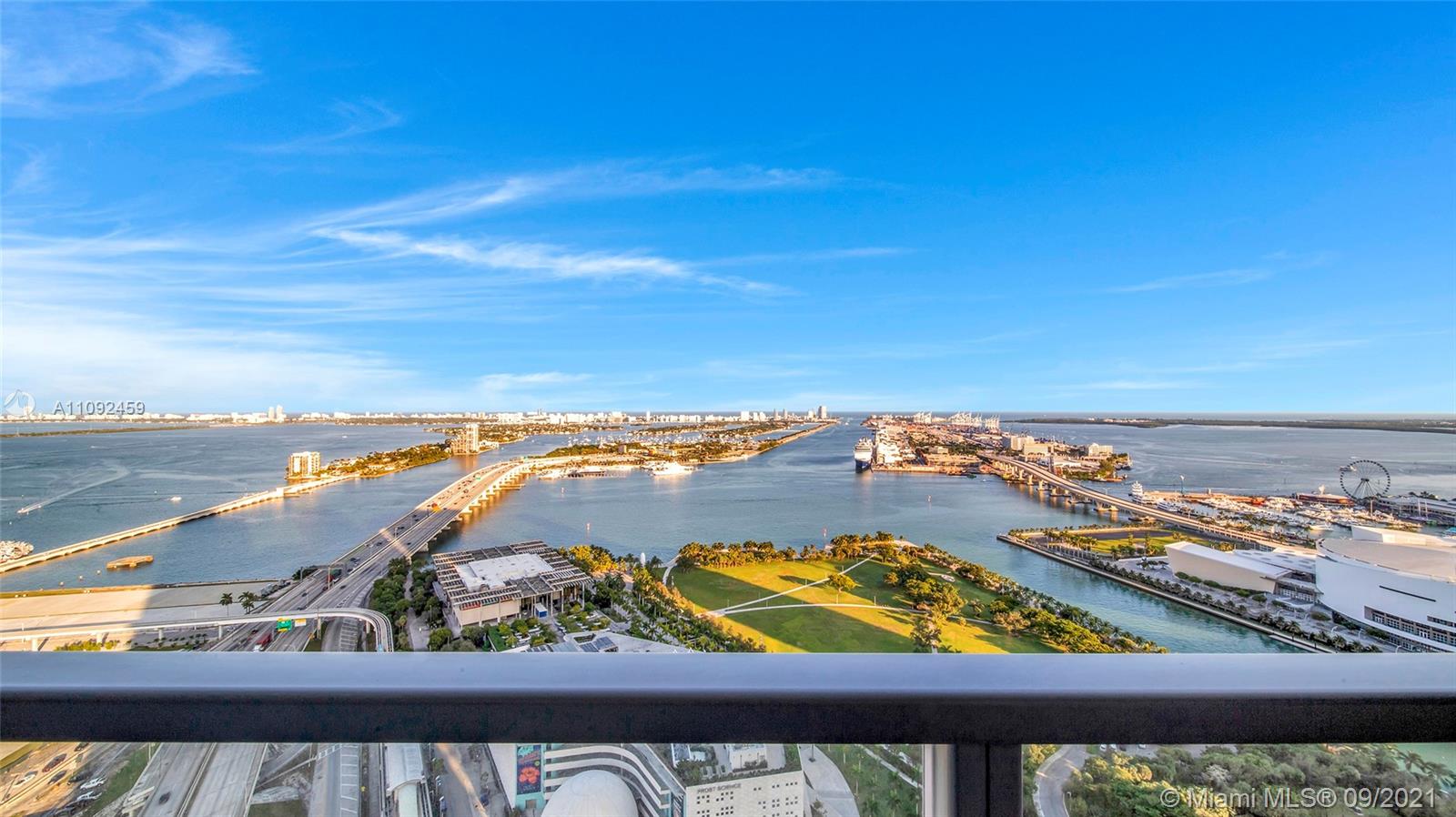 SPACIOUS 2 BED 2.5 BATH RESIDENCE AT MARQUIS WITH 1,477SF OF LIVING SPACE ON A HIGH FLOOR WITH BIG WATER AND CITY VIEWS. THIS FLOW THROUGH UNIT FEATURES 2 PRIVATE ELEVATORS WITH WELCOMING FOYER, FANTASTIC EAST VIEWS OVER MUSEUM PARK, BISCAYNE BAY, MIAMI BEACH AND THE OCEAN. BREATHTAKING SUNRISE FROM MASTER BEDROOM & LIVING ROOM. OPEN KITCHEN WITH VIKING APPLIANCES, SEPARATE LAUNDRY ROOM W/ FULL-SIZE WASHER & DRYER, PLUS MASSIVE WALK IN CLOSETS. HIGH CEILINGS. LIVE THE MIAMI LIFESTYLE IN THIS WELL LOCATED BUILDING, WITH THE MOST INCREDIBLE AMENITIES AND LIFESTYLE OPTIONS, INCLUDING POOLS, SPA, WELLNESS, YOGA, HOTEL, RESTAURANT, VALET PARKING AND MORE. CALL US FOR A VIDEO TOUR TODAY!