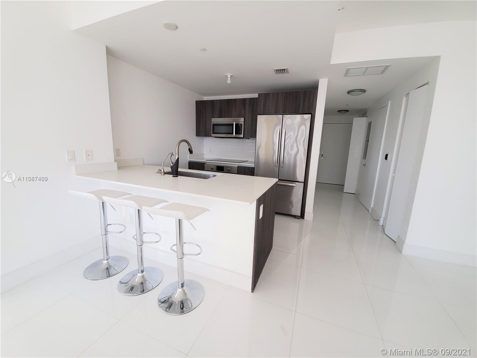 ARIA ON THE BAY High-rise 41st floor, great opportunity 1 bed/1bath+1.5bath and a big balcony sharing bedroom and living room with a spectacular ocean and city view. Washer & dryer in unit, 1 car garage & valet parking. A five star-resort style amenities designed by Arquitectonica include sunrise/sunset pool, BBQ, spa, sauna, steam room, business center w/library, fitness center, yoga, movie theater, resident's lounge w/private party room. Conveniently located close to the beaches, Wynwood, the Design District, Brickell, it won't last for this price!!!.- Pease check broker remarks ONLY INVESTORS, unit is rented.