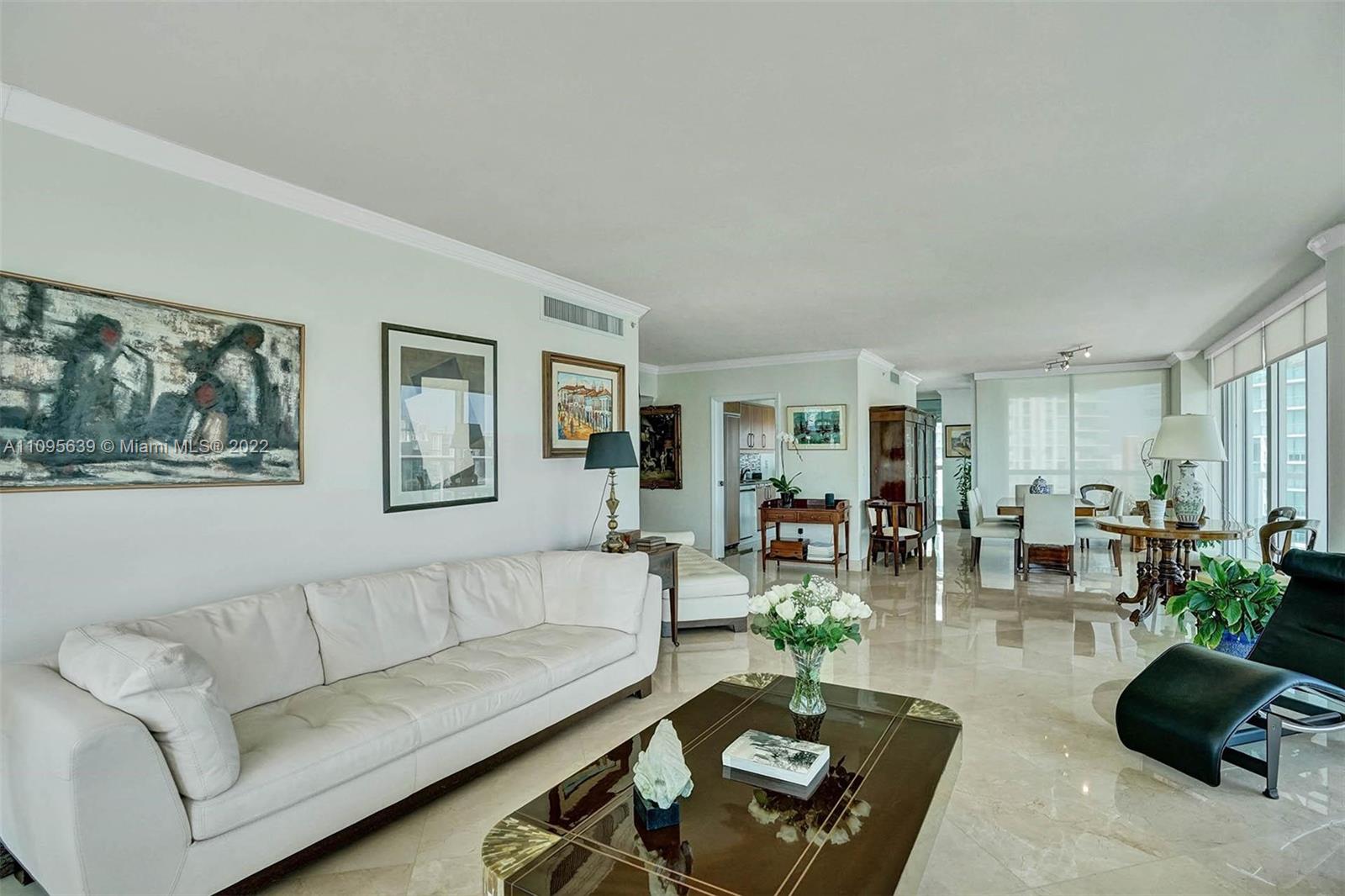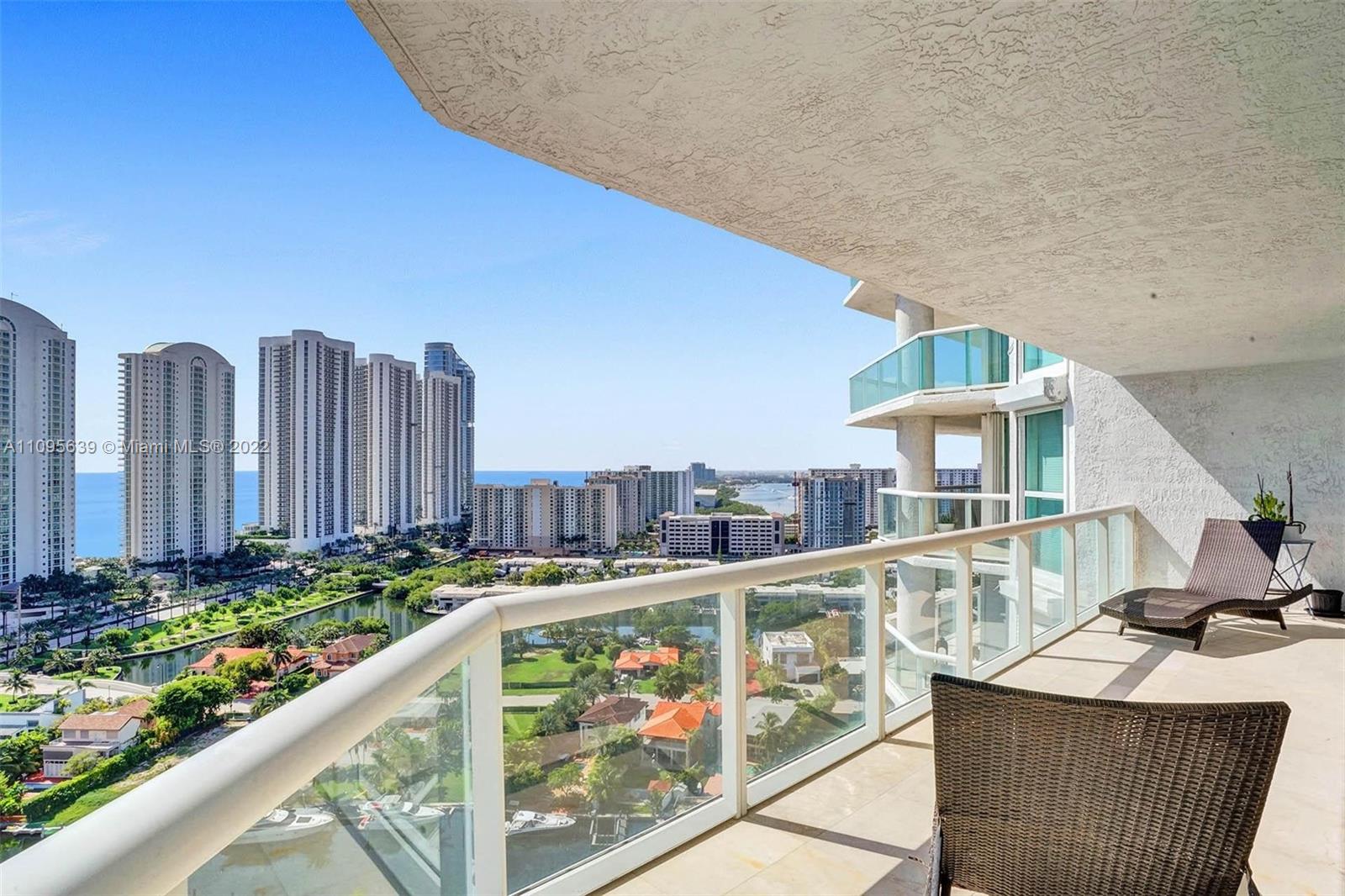 This special corner property is in the sought out area of Sunny Isles Beach. It has breathtaking views of the Ocean, Intracoastal + city. This residence boasts 2,144 indoor SF and a large wraparound terrace. 3 full bedrooms and 3 bathrooms. Some of the finest finishes include redone kitchen + new appliances, marble floors throughout living areas and brand new light grey wood floors in bedrooms, custom closets. Enjoy the unsurpassed lifestyle of Oceania with clubhouse, cafe, pools, beach service, multiple restaurants inside and out, gym, salon. A boater's dream on private island with a marina and so much more.