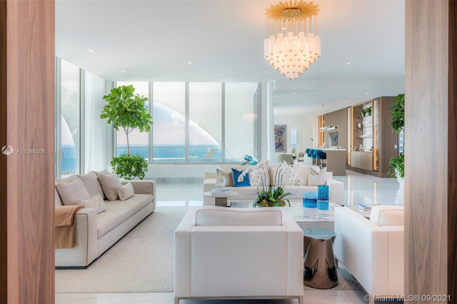 One-of-a-kind two-story Signature Upper Penthouse with 360° striking views. 12ft ceilings throughout and over 7,500 of a wrap-around balcony and an oversized jacuzzi overlooking the ocean. Stunningly furnished and ready to move in with just your toothbrush! Up to 7 bedrooms/9.5 bath, 2 level master bedroom with private gym, sauna, steam + jacuzzi bath overlooking downtown Miami, the ocean + intracoastal. A palace in the sky!