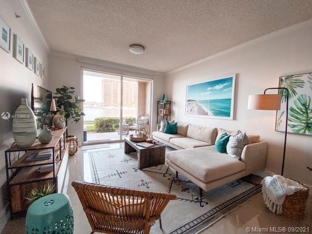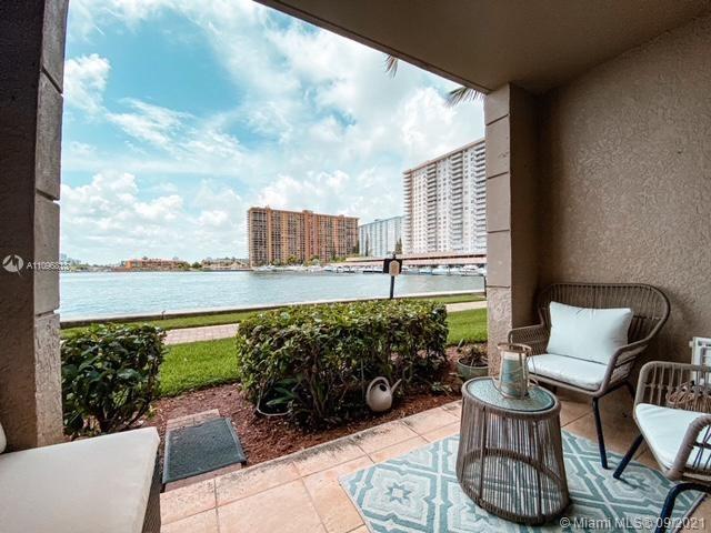 Spectacular direct Intercostal & Marina View from every room in this Mediterranean Resort style bldg, upgraded with stainless steel appliances & granite counter tops, New Porcelain floors, both bedrooms have a bath in suite, one access for guests, the uni t laundry room with washer and dryer inside, immaculate condition. Pet friendly. Walk to the beach the unit has a new a/c system with a 10 year warranty - rented for $2150 until march 2022 - This property is not contingent to appraisal