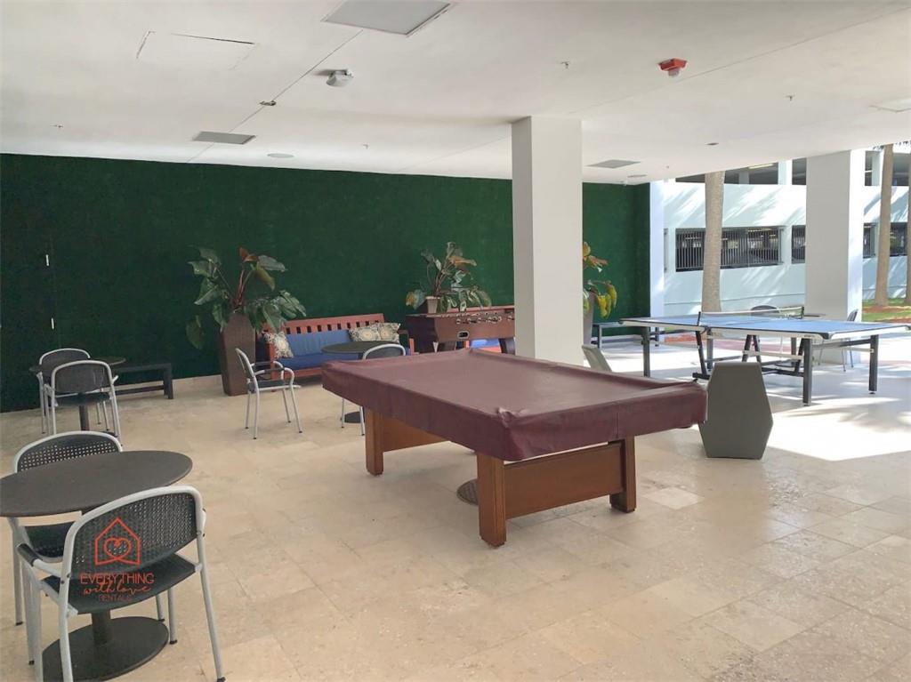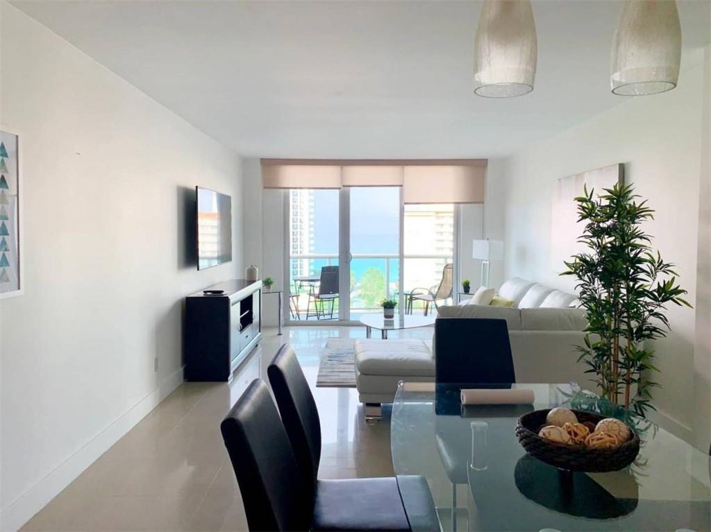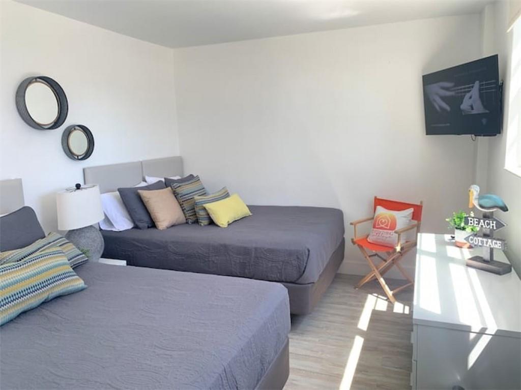 TURNKEY vacation rental apartment produces revenue immediately. SHORT TERM RENTALS fully allowed, no restrictions. Direct OCEAN view. 1 bedroom with 2 Queen-size beds + 1 Den with a Queen size bed, built-in closet space, and recessed ceiling with LED lights. 1 full bathroom plus a half-bathroom. Nicely decorated, fully furnished, and fully equipped. Balcony with artificial turf. Vinyl flooring in the bedrooms and ceramic tile in the living room. White open bar-style kitchen with quartz countertop.