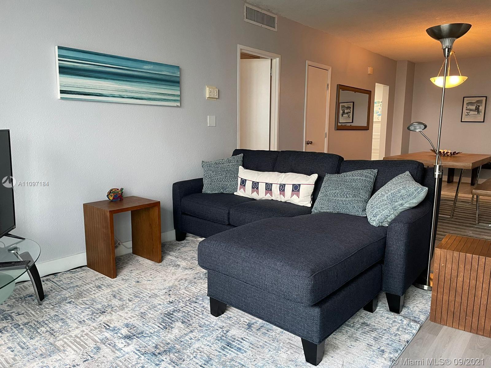 Beautiful and spacious 14th floor 1 bedroom 1.5 bath plus den corner unit located in Hallandale Beach. This gem is only steps away from the beach with awesome ocean and intracoastal views from the balcony. This resort style condo is close to Gulfstream racing casino, Aventura mall, FLL international airport, grocery stores, and fine dining. Great investment opportunity! Unit is licensed for vacation with no restrictions for rental: daily, weekly, monthly, airbnb among other sites, as well as long term rentals. This turnkey unit has brand new furniture, which is included in the sale, and appliances. Kitchen and bathroom have been upgraded. Amenities include valet parking, 24 hour security, cover garage, secure elevators, pool, gym, clubhouse and a business center.