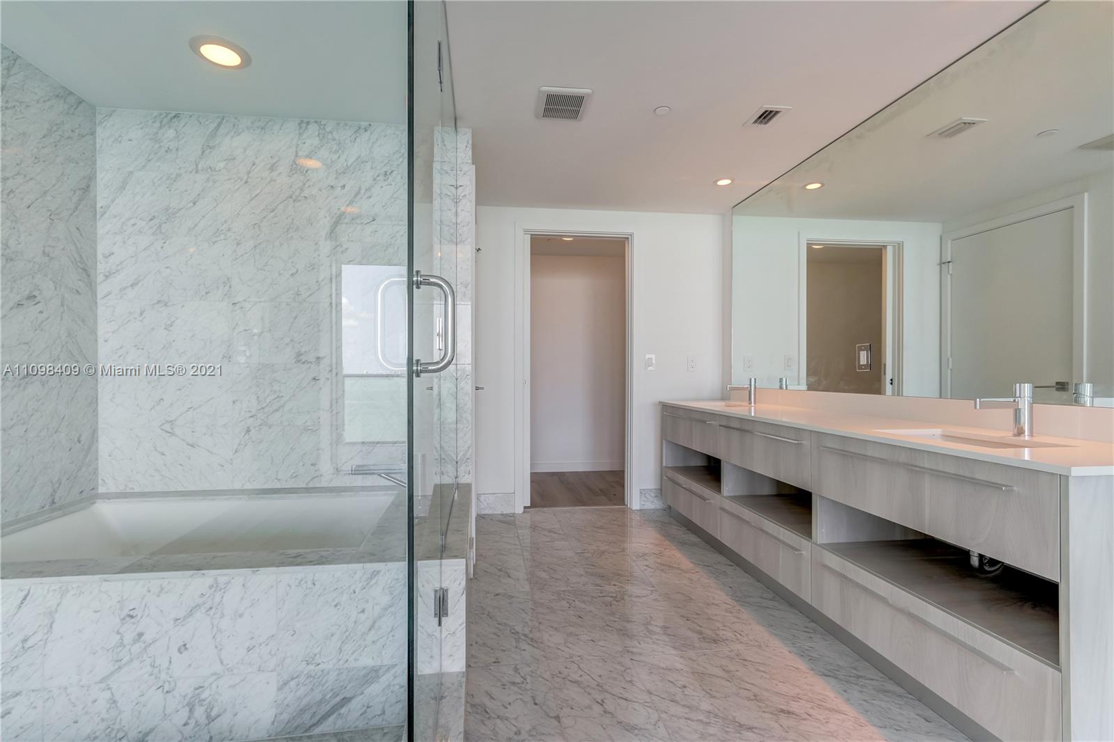Unparalleled direct unobstructed views, amenities and luxury abound at the Paraiso District's premiere address, One Paraiso. 3Bedroom + Den, 3.5Bath unit with 350SF of terrace for outdoor living. High floor unit w/only 6 units per floor give an exclusive boutique condo feel. Private elevator and foyer welcome you into a sprawling floor plan with white marble flooring throughout. Den space doubles as a media room/office or convertible to convenient guest space. Amenities are endless and complete the experience. Tennis courts, multiple pool lounge areas on multi levels, Spa with sauna/steam and massage services, resident lounges, and deluxe fitness center. Design District, Brickell, Midtown, Miami Beach, the airport all at your fingertips and just minutes away.