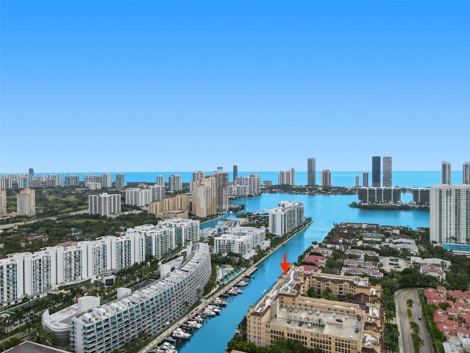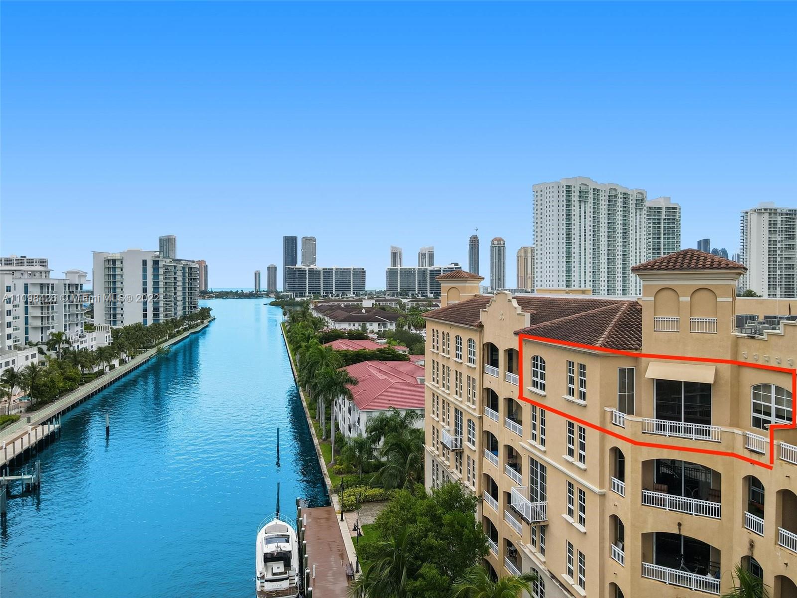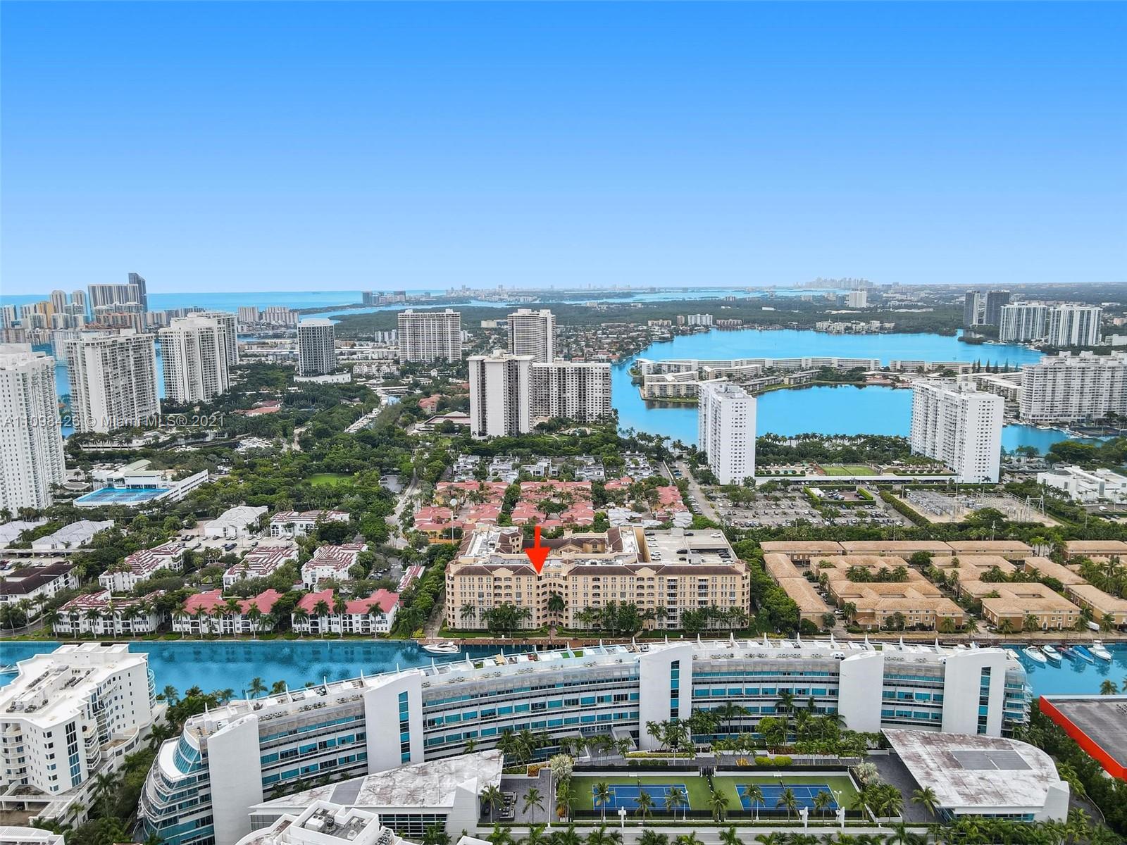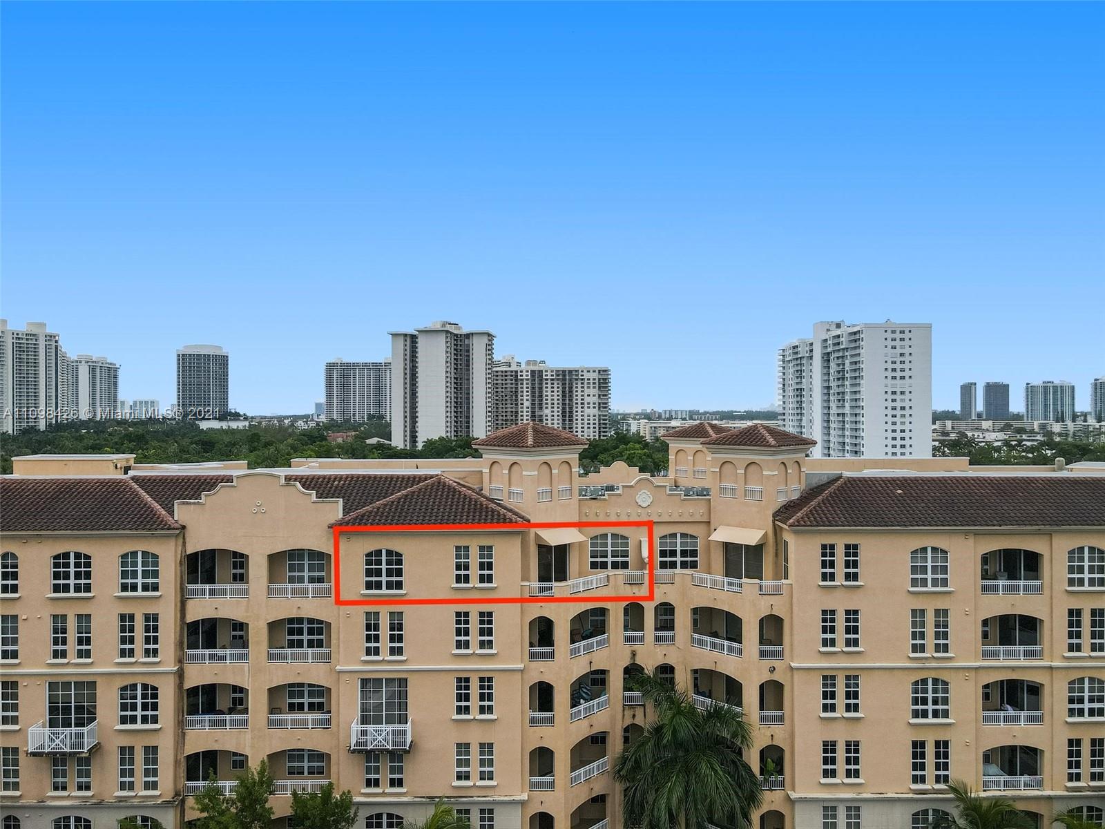 Best line, rarely available. Beautiful Top floor 2 bedroom 2 bath with open layout, 12 foot ceilings and a large covered terrace overlooking the water. Freshly painted. Brand new water heater and brand new AC. Washer and dryer in unit. 2 covered parking spots and a huge Storage room located on 6th floor. Alaqua offers 5 star amenities: a newly renovated waterside dock, state-of-the-art fitness center overlooking the water, hot tub, pool, playground, business center, 24-hour security, valet and more. Just a short walk to Aventura Mall, Publix, restaurants, and beaches. A+ rated schools and Brightline station at Aventura Mall to make travel even easier. Easy to show.