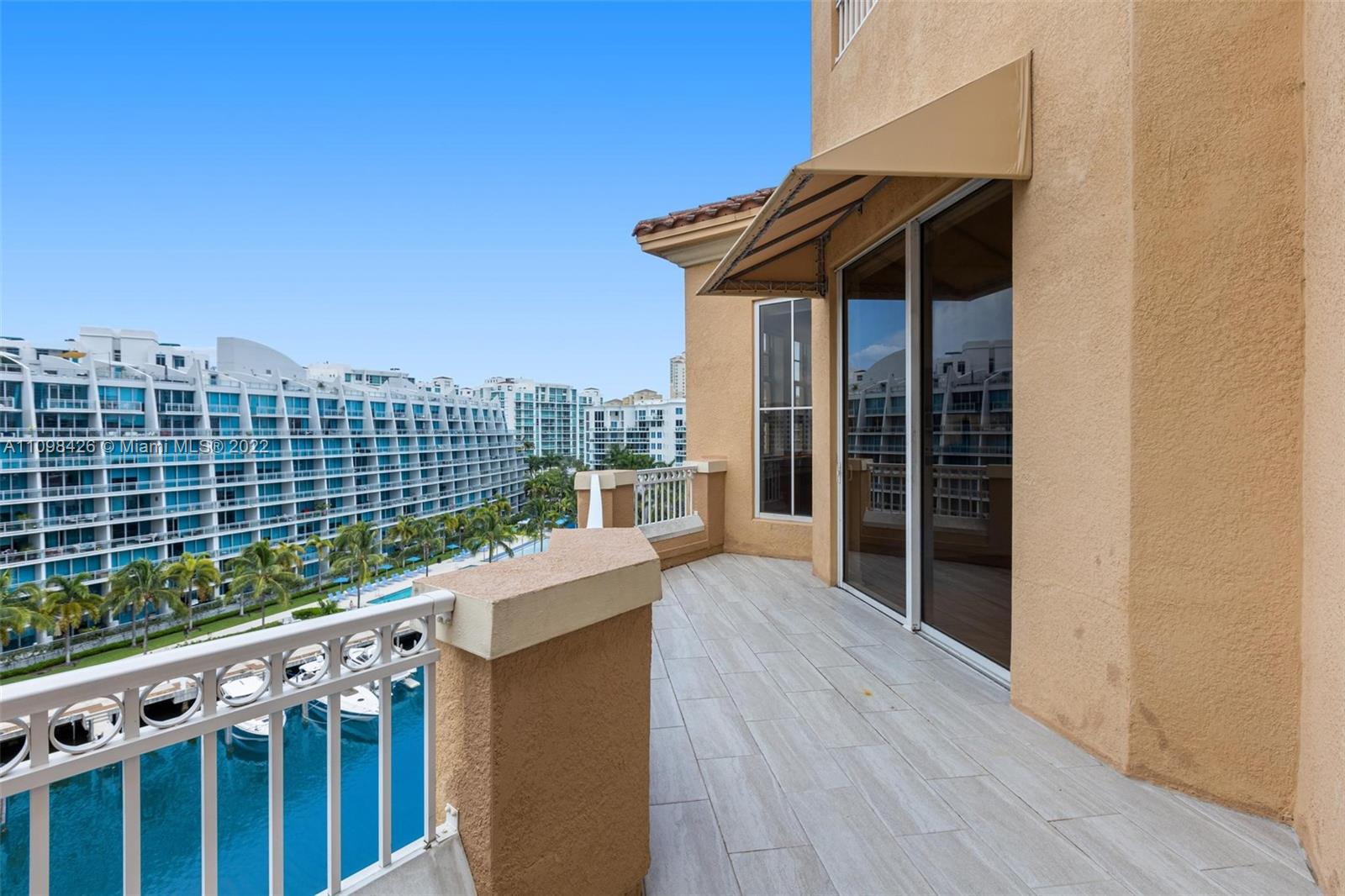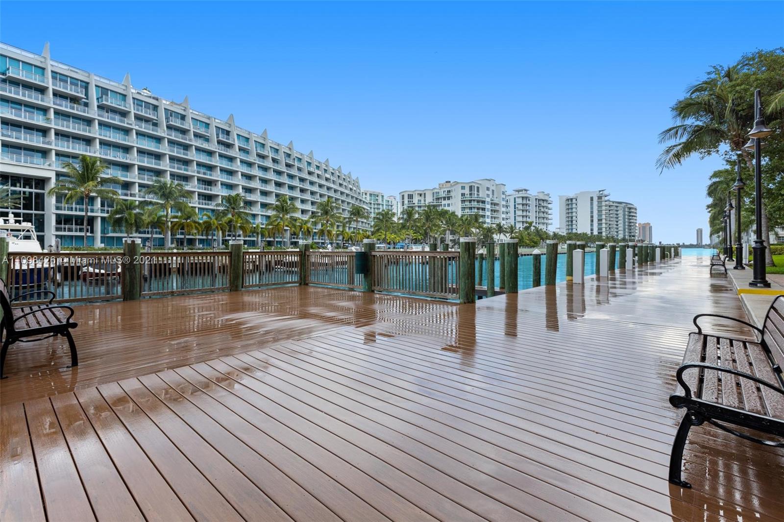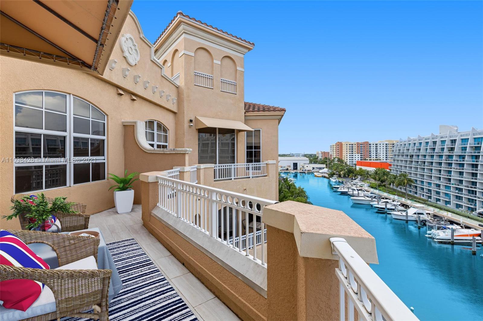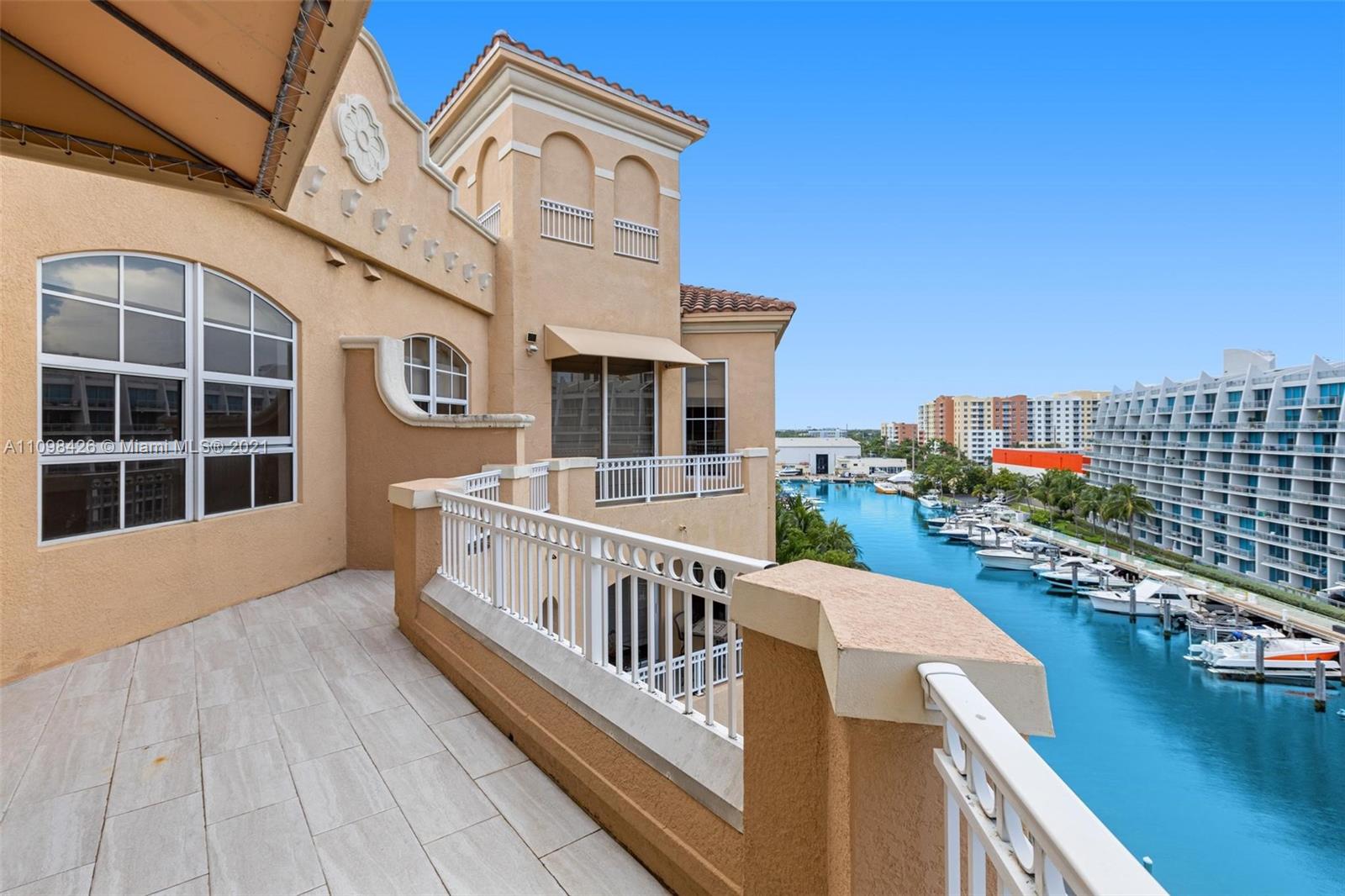 Best line, rarely available. Beautiful Top floor 2 bedroom 2 bath with open layout, 12 foot ceilings and a large covered terrace overlooking the water. Freshly painted. Brand new water heater and brand new AC. Washer and dryer in unit. 2 covered parking spots and a huge Storage room located on 6th floor. Alaqua offers 5 star amenities: a newly renovated waterside dock, state-of-the-art fitness center overlooking the water, hot tub, pool, playground, business center, 24-hour security, valet and more. Just a short walk to Aventura Mall, Publix, restaurants, and beaches. A+ rated schools and Brightline station at Aventura Mall to make travel even easier. Easy to show.