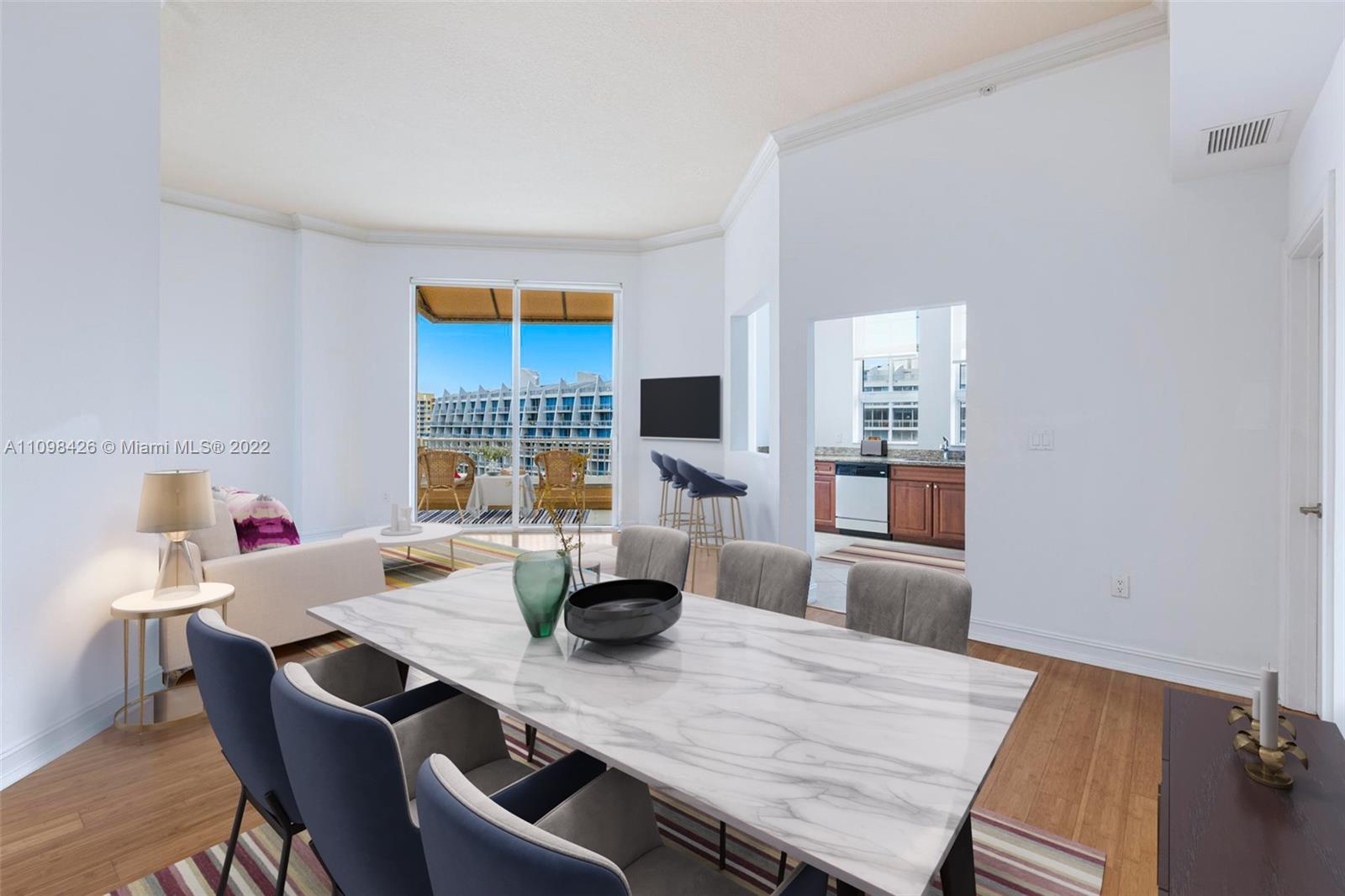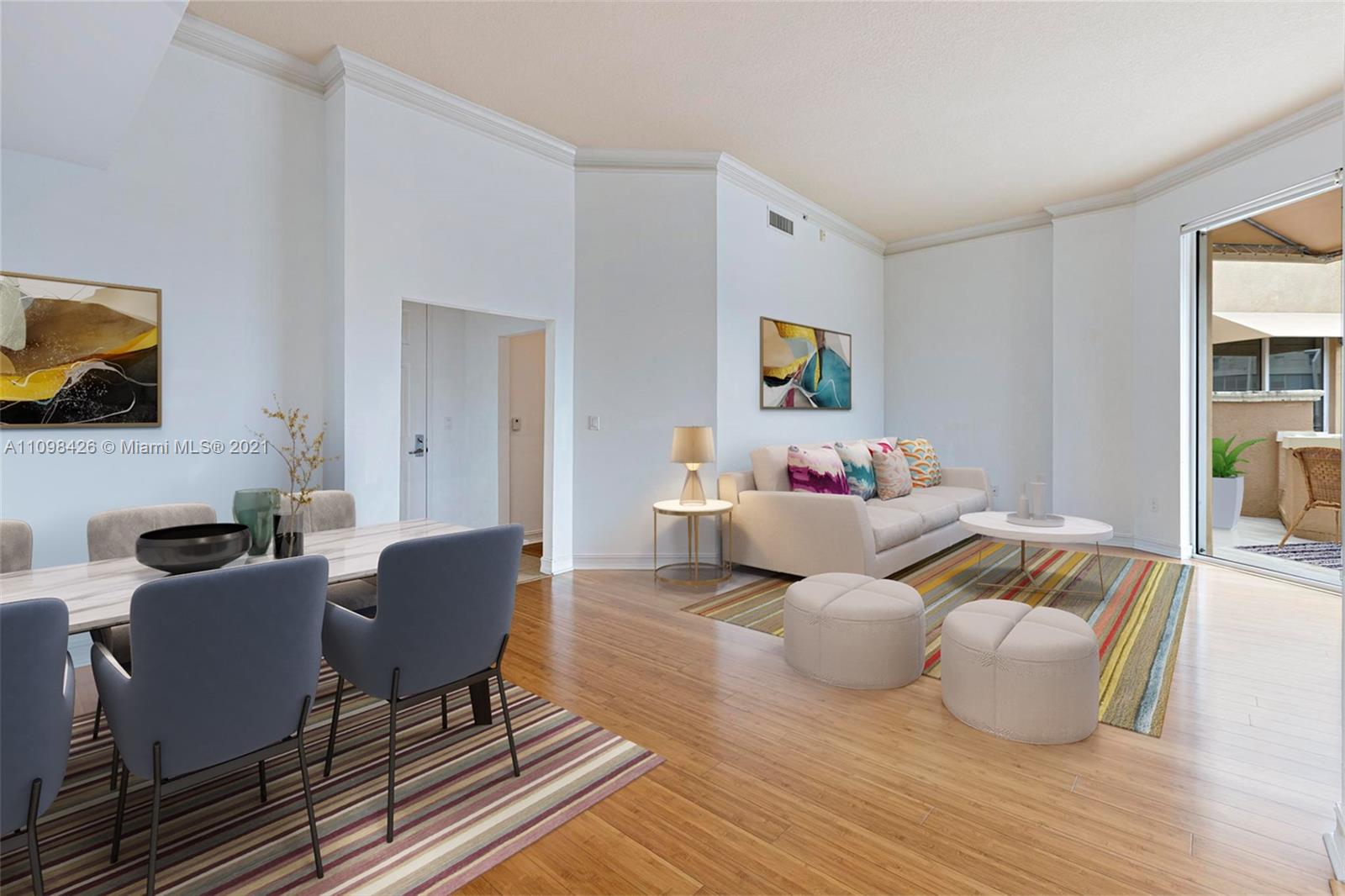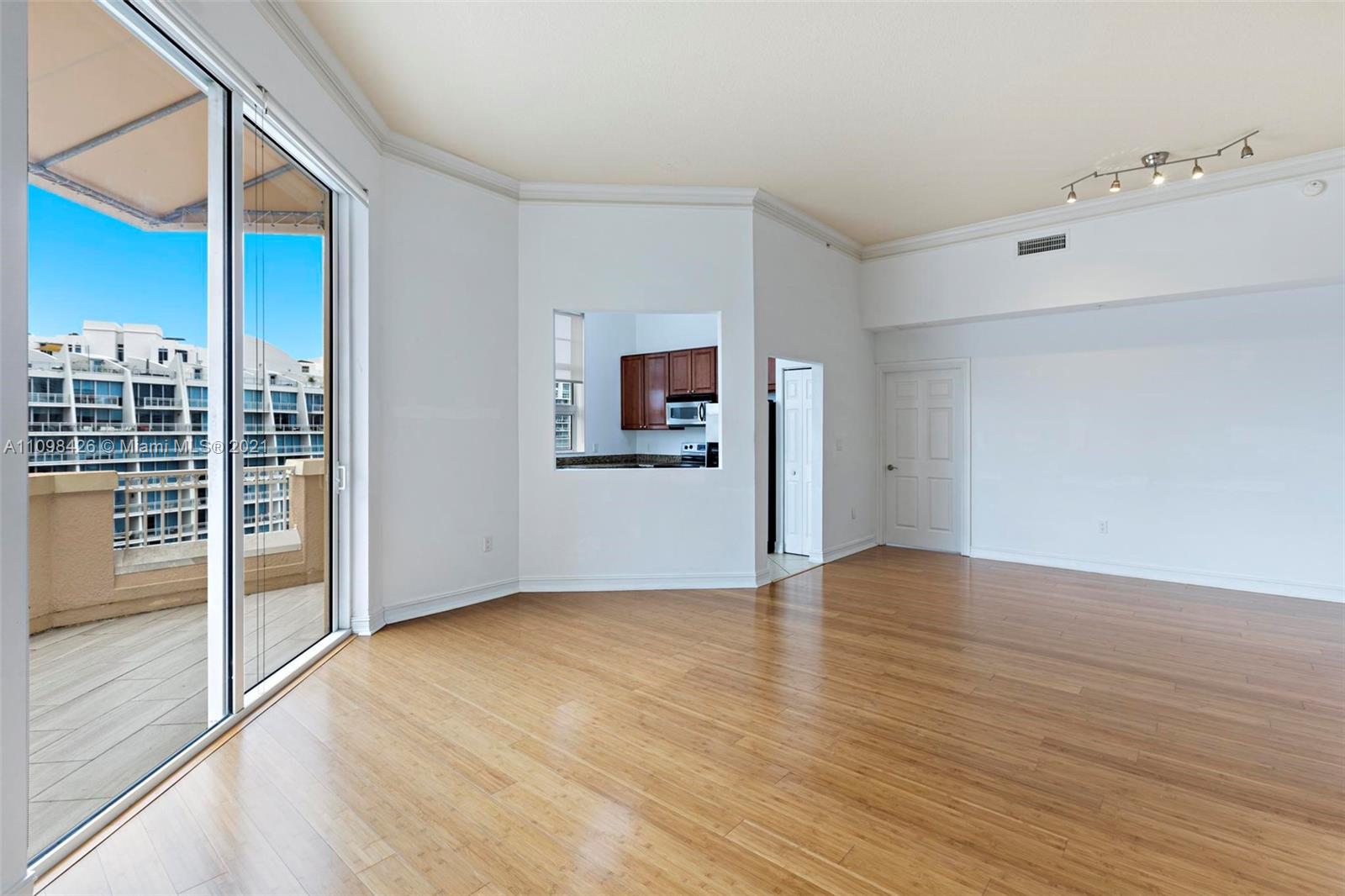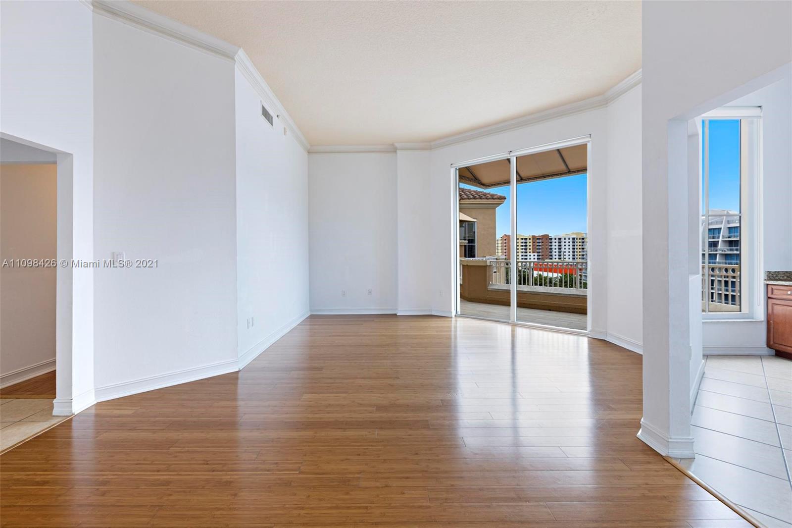 Best line, rarely available. Beautiful Top floor 2 bedroom 2 bath with open layout, 12 foot ceilings and a large covered terrace overlooking the water. Freshly painted. Brand new water heater and brand new AC. Washer and dryer in unit. 2 covered parking spots and a huge Storage room located on 6th floor. Alaqua offers 5 star amenities: a newly renovated waterside dock, state-of-the-art fitness center overlooking the water, hot tub, pool, playground, business center, 24-hour security, valet and more. Just a short walk to Aventura Mall, Publix, restaurants, and beaches. A+ rated schools and Brightline station at Aventura Mall to make travel even easier. Easy to show.