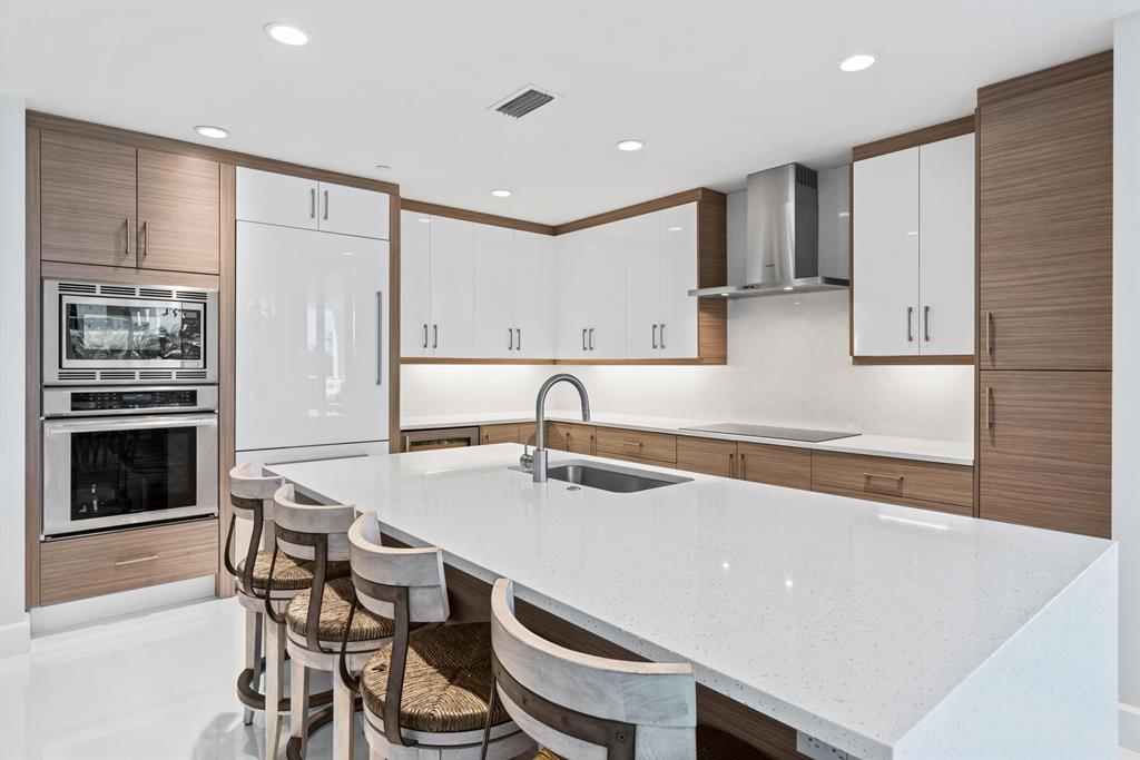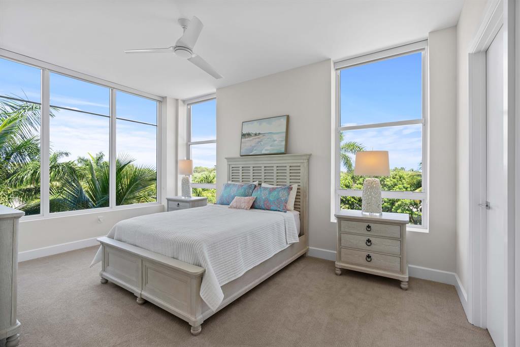 The most sought-after waterfront location in all of Palm Beach Gardens, Azure features spectacular no fixed bridge access to the Intracoastal Waterway with a full-service Loggerhead Marina on-site. As you exit your privately keyed elevator into this custom corner residence with 270-degree views of lush landscaping, water and marina views, you will find 32'' polished white porcelain flooring, impact windows and floor-to-ceiling sliding doors with ceiling heights soaring to 10 feet. This open great room plan includes custom cabinetry with quartz countertops throughout, Grohe plumbing fixtures, and top of the line Thermador appliances. Upgrades include a custom built-in entertainment center, motorized shades w/drapery pockets, wine refrigerator, induction cooktop, custom closet...