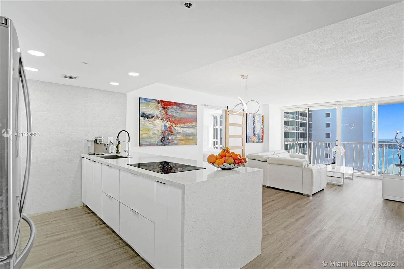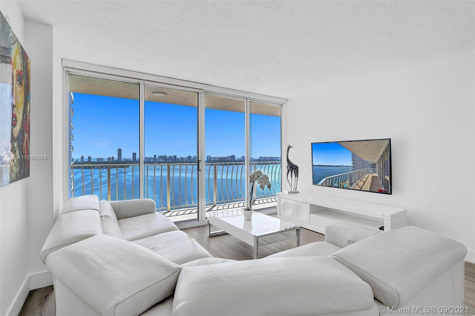 Look no further! Exquisite residence featuring gorgeously remodeled kitchen and stunning bay views from all rooms on a high floor. Many custom features include stylish barn doors and imported Versace tile from Italy in the kitchen. The development offers many top notch amenities including Olympic size swimming pool, restaurants, doorman/ security, dry cleaning services and marina. North Bay Village is the perfect central location, it is an island located between Miami Beach and Downtown Miami/ Design District & in close proximity to Bal Harbour Shops & both airports. Development is in walking distance to shops and waterfront restaurants such as Benihana and Shuckers. Low condo fee. Easy to show.