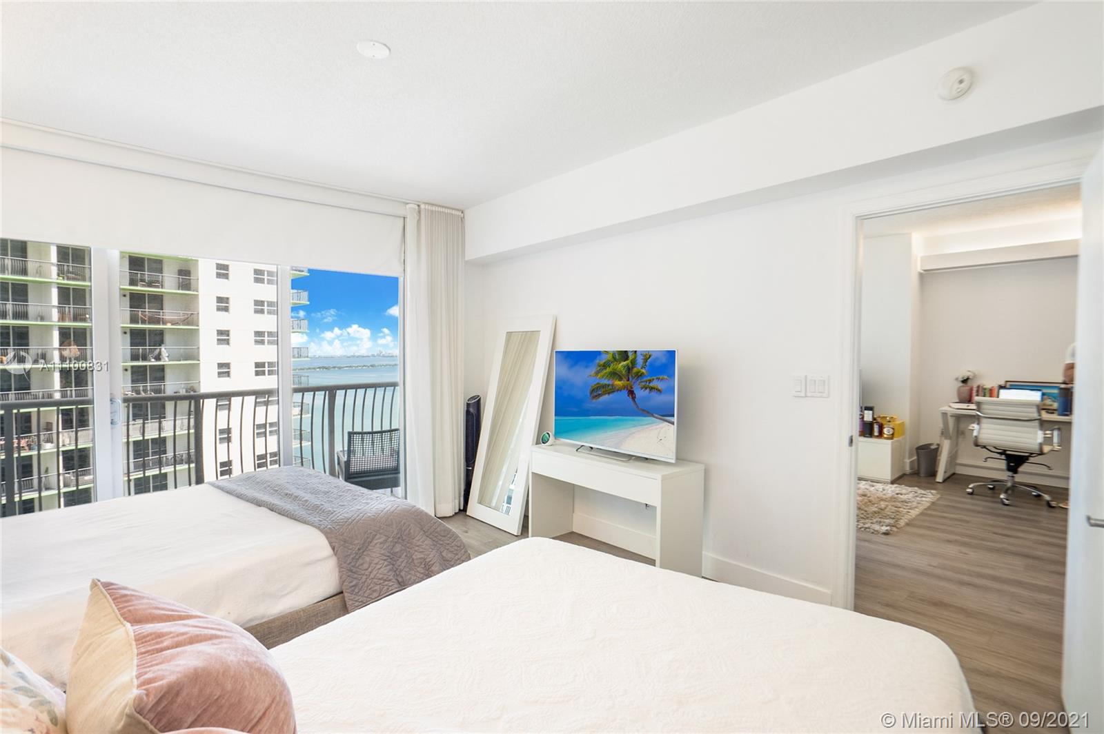 Beautiful 1 bedroom, 1 bathroom condo with espectacular bay views from living room and master bedroom in a full amenities building (pool, gym, sauna.) GREAT location, in front of beautiful park with tennis courts. Walk to coffee shops, restaurants, metro mover station and more!